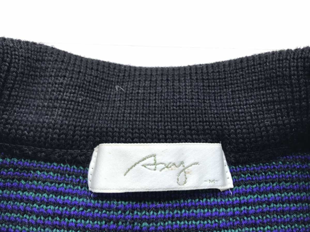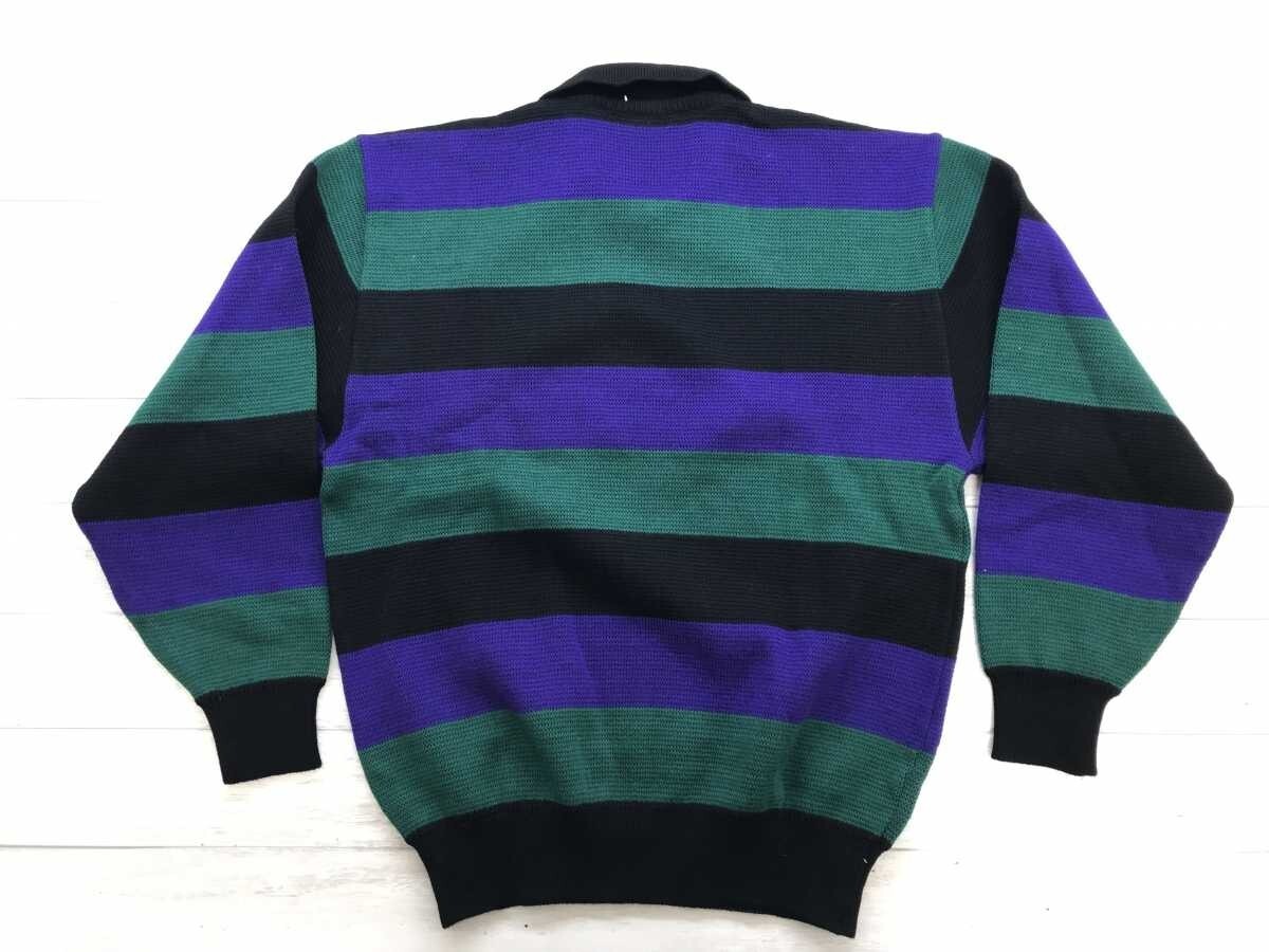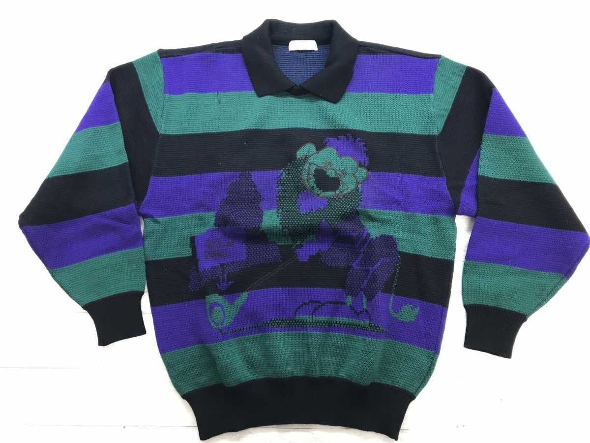 アクシー Axy ミズノ MIZUNO レトロ オールド スポーツ ゴルフ ライオン ボーダー 襟付き ジャガードニット セーター メンズ ウール100% M です。