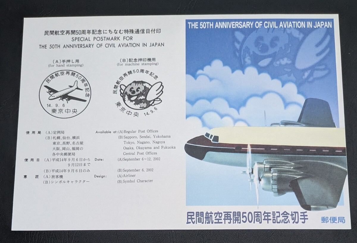 2002年・記念切手-民間航空再開50周年・解説書付シート