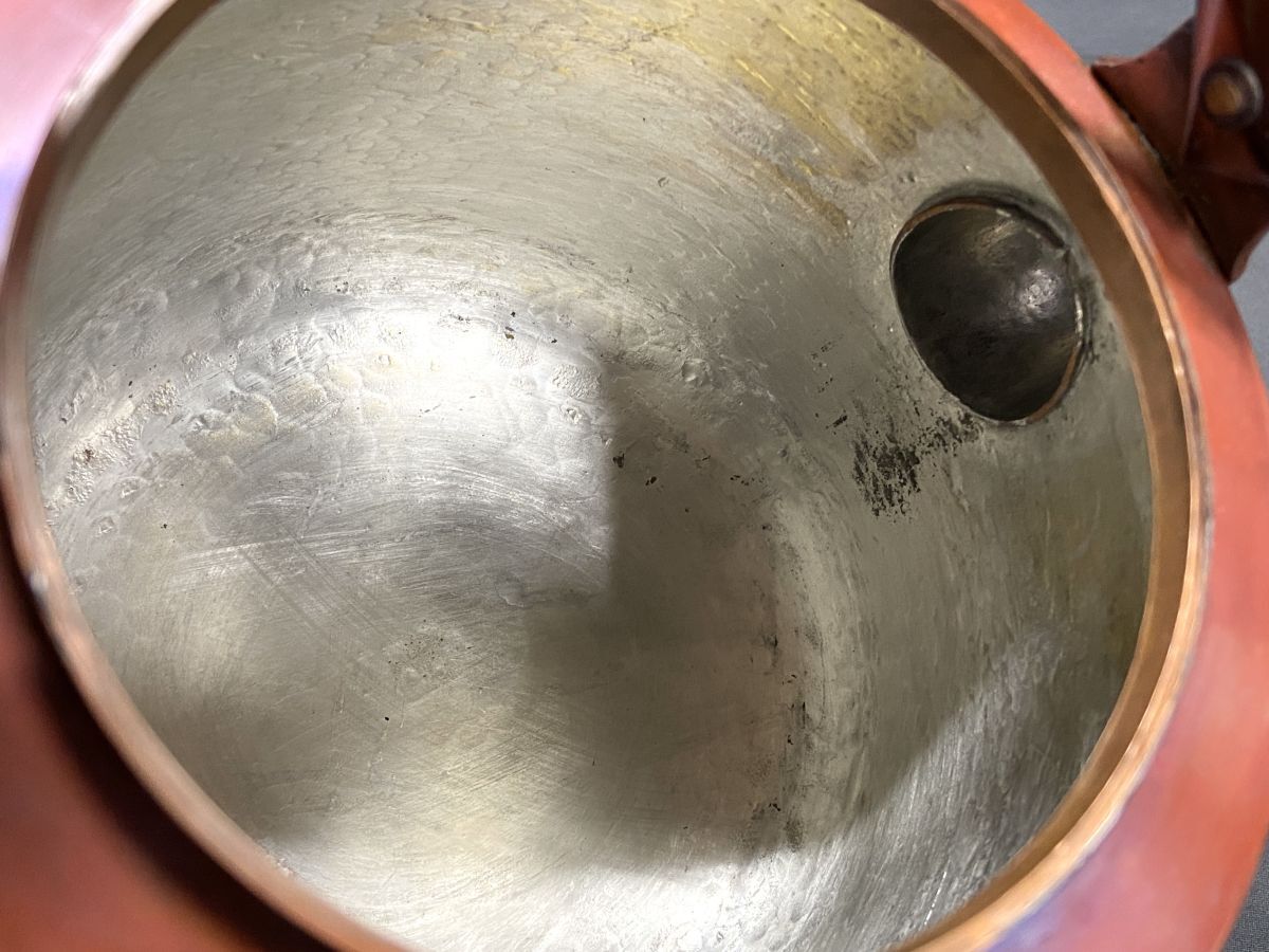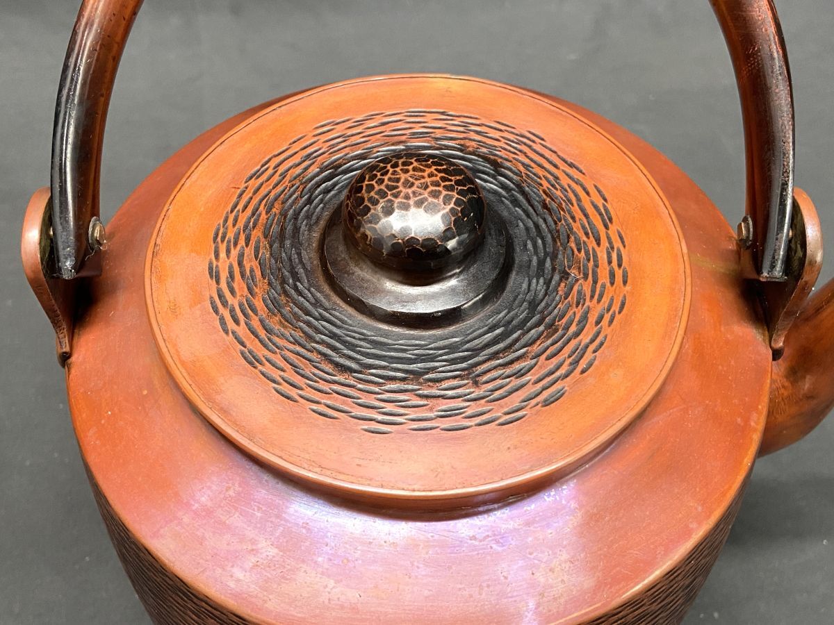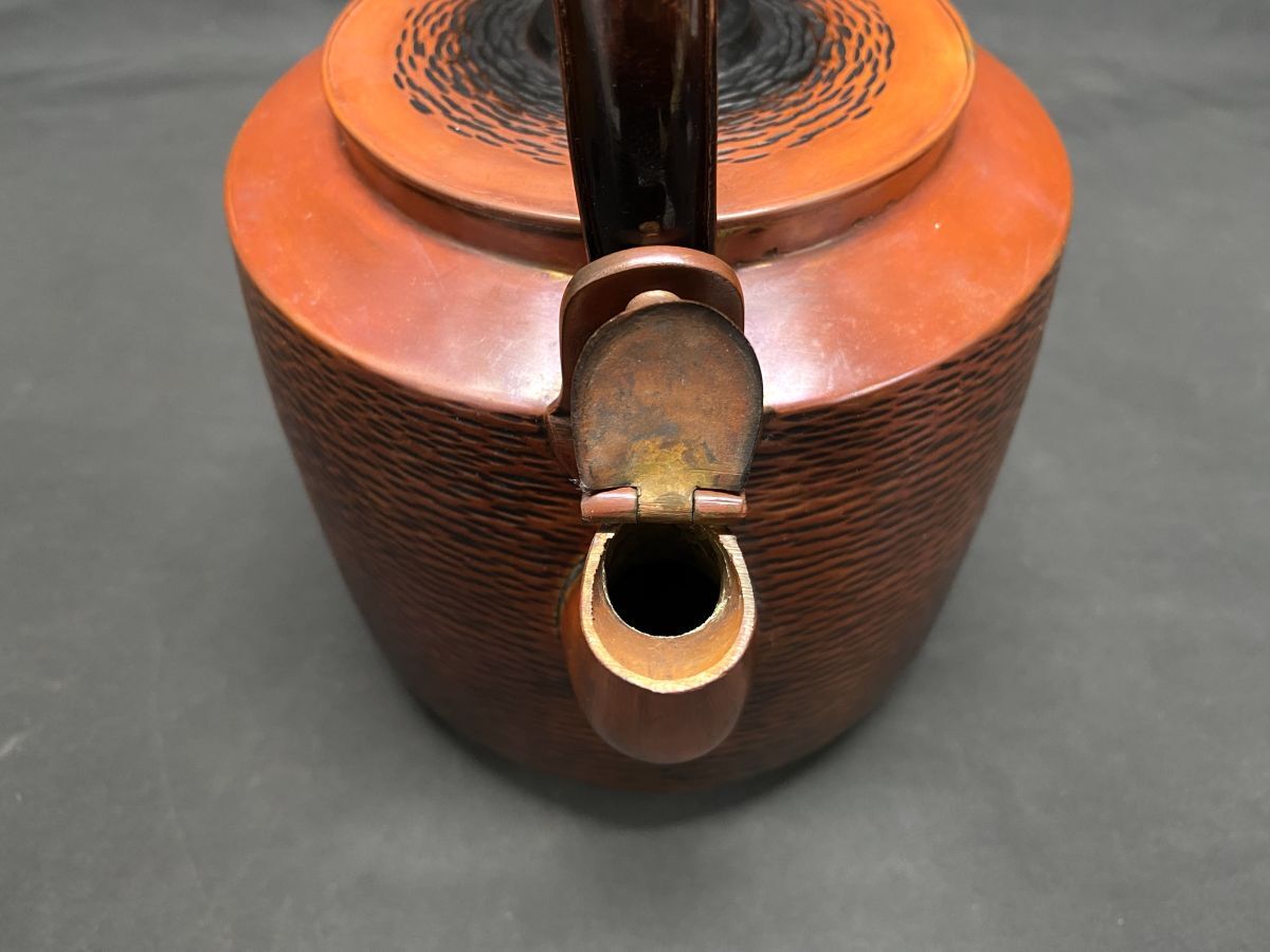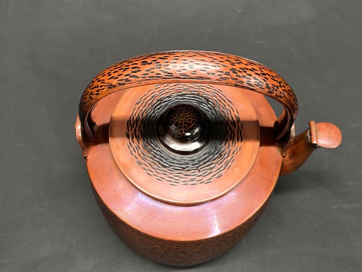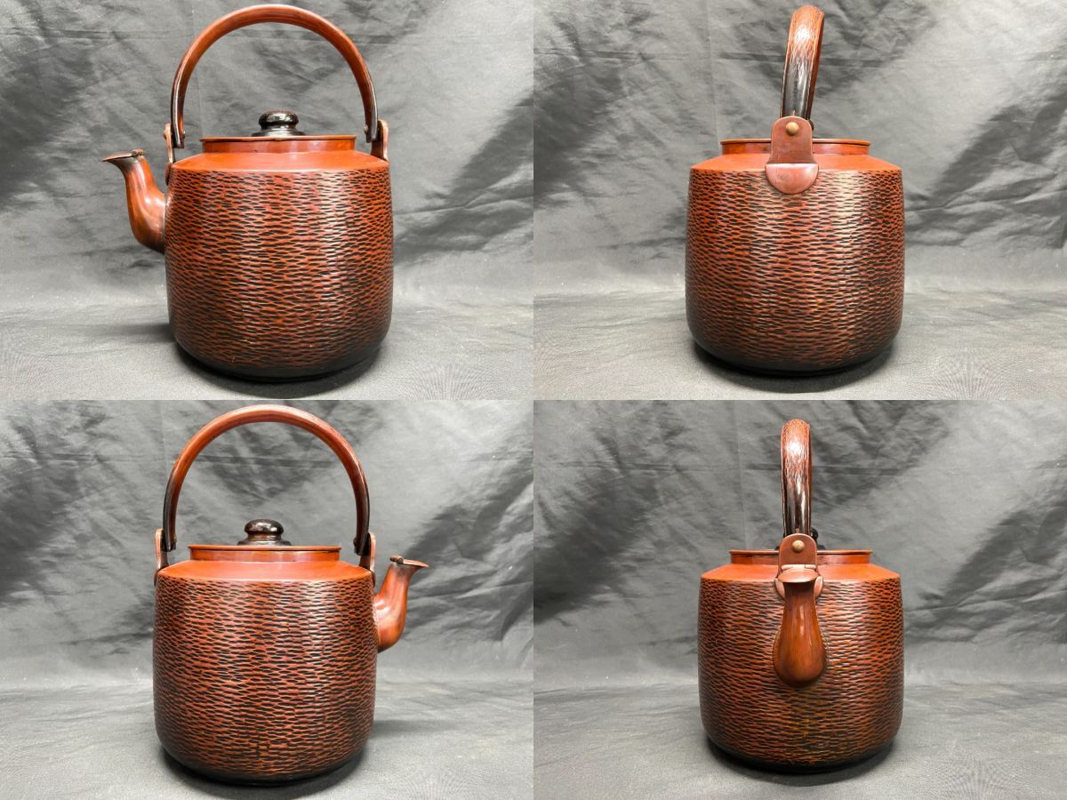 | 【R608】昭和レトロ アンティーク 昭和4年 骨董品 槌目 銅製 茶道具 やかん 壺瓶/壷 水差し 古美術 木箱 b | ||