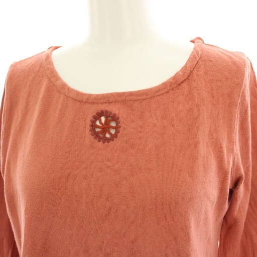 ホコモモラデシビラ Jocomomola de Sybilla ガーゼベアテン胸元刺繍7分袖カットソー Tシャツ 40 オレンジ GJKJE-30089 /HN