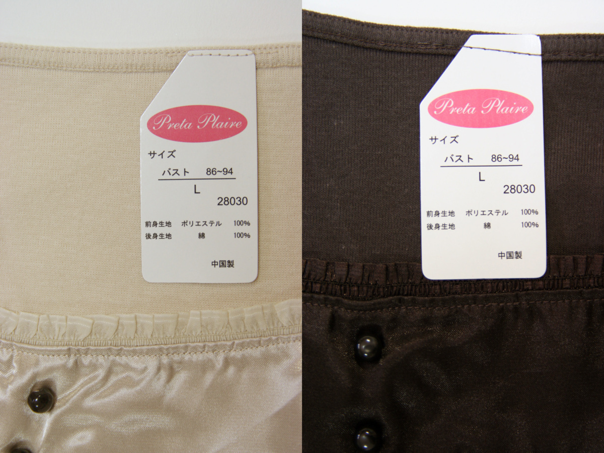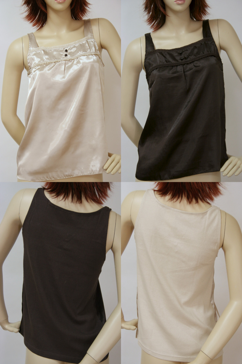 ・こちらの出品は、同デザイン・色違いのラン型サテンキャミソール2色組(シャンパンベージュ&ダークブラウン)です。