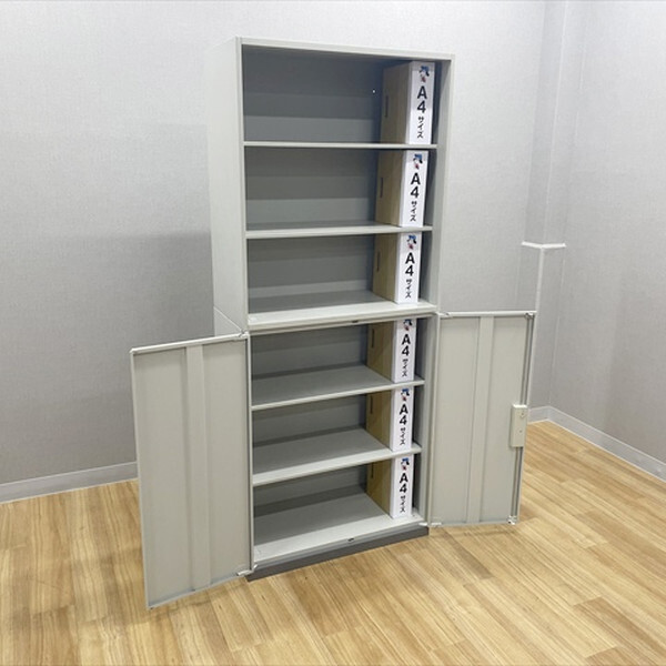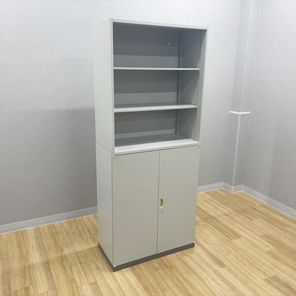 ■取り扱い番号 CU-877568B ■仕様 メーカー : ナイキ 製品名 : NEOS 色素材 : ウォームホワイト 外寸 : 幅900mm 奥行き450mm 高さ2150mm ランク : Bランク ■特徴 上段:NW-0911N 下段:NW-0911K ベース付 棚板4枚 上段は扉がないので、可視性に優れています。頻繁に取り出す必要のある資料やカタログ類を収納するのに最適です。下段の扉は180°まで開口可能なので人の通行を妨げることなく収納物の出し入れができます。 |