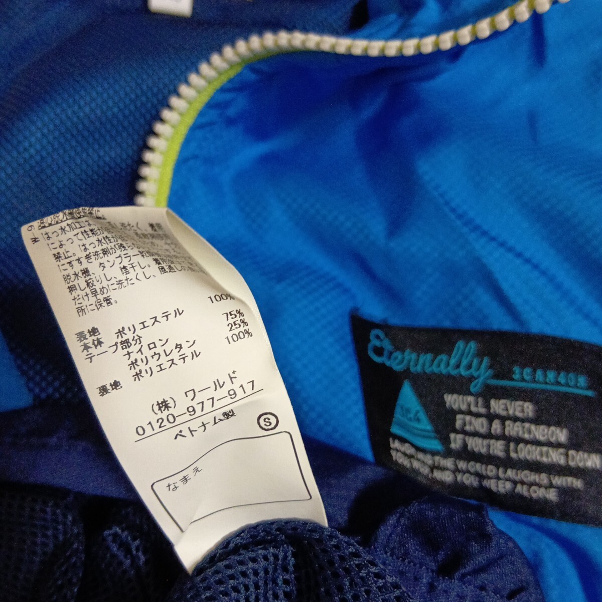 その他 :色は、青×濃紺 フードは取り外し不可 畳んでマジックテープで収納 裏はメッシュです。