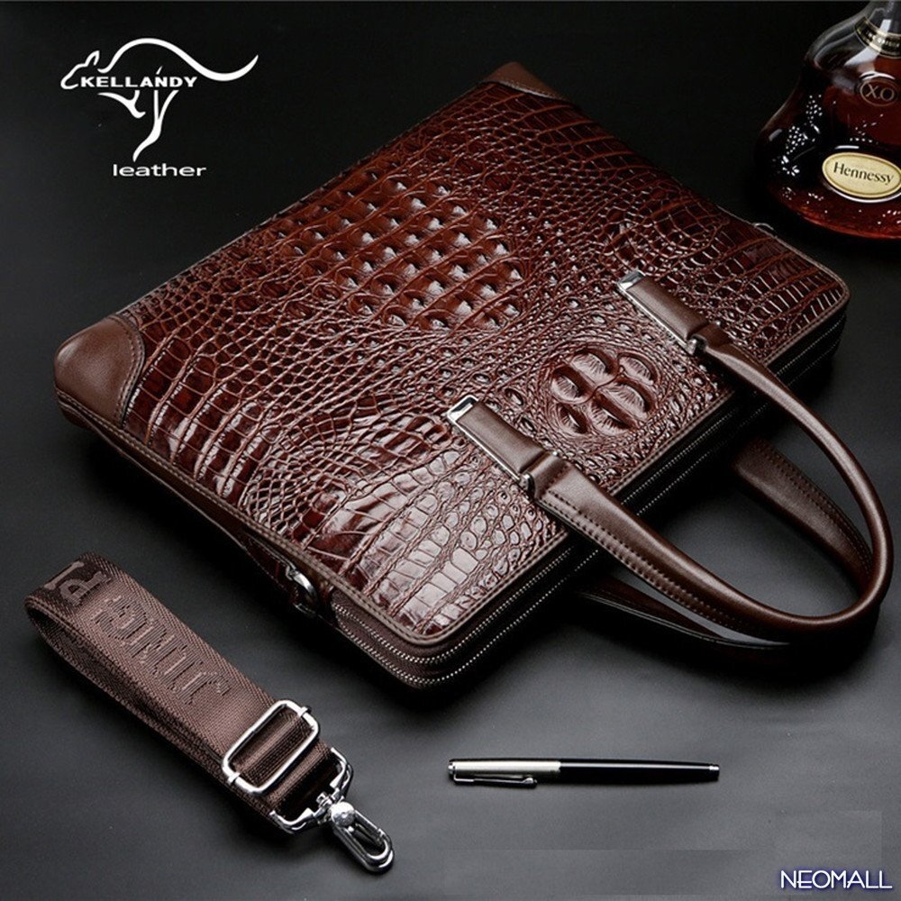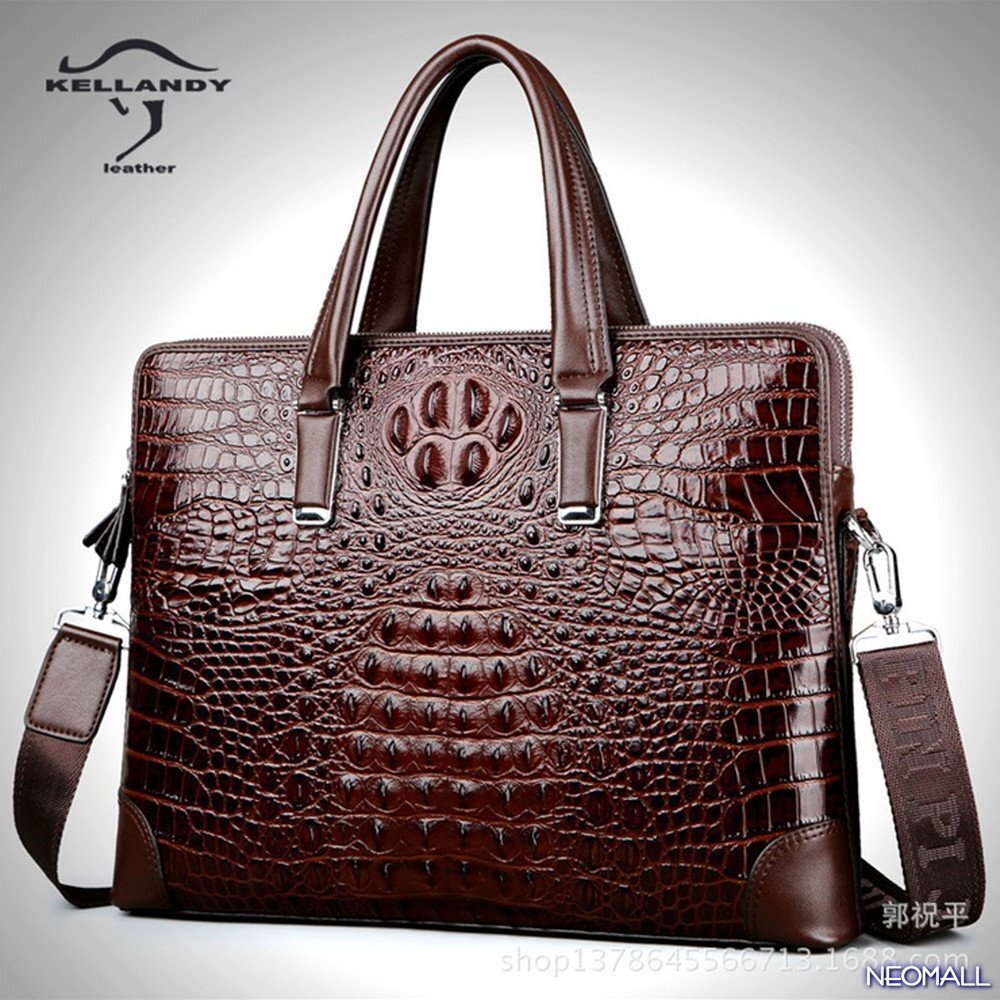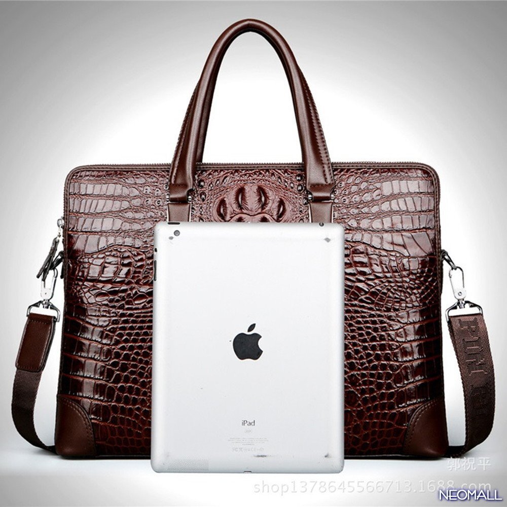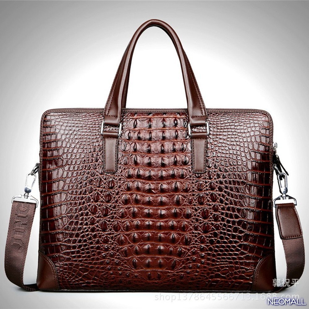 人気のワニ柄☆ クロコダイル 型押し メンズ ビジネスバッグ ブラウン お洒落な ワニ柄 ハンドバッグ 【292】