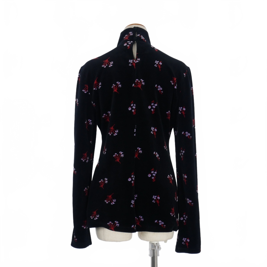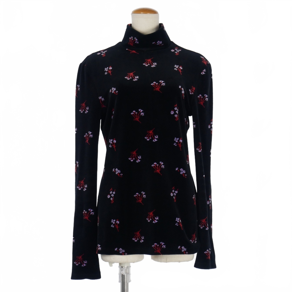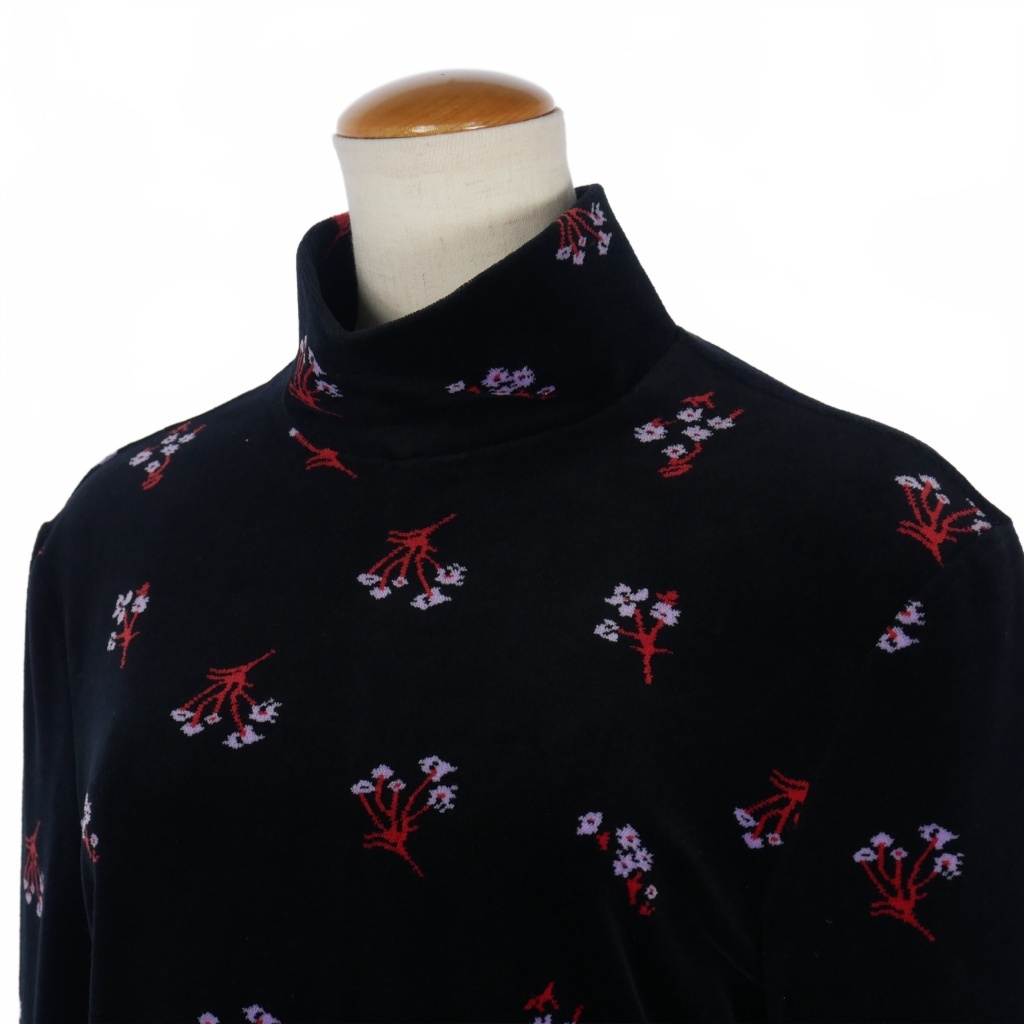 マメクロゴウチ Mame Kurogouchi ベロア タートルネックトップス カットソー 長袖 サイズ4 花柄 ブラック 黒 MM22PF-JS707 レディース