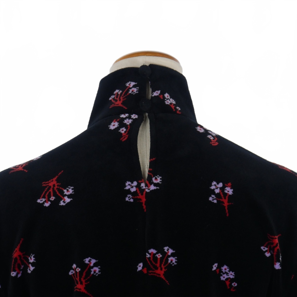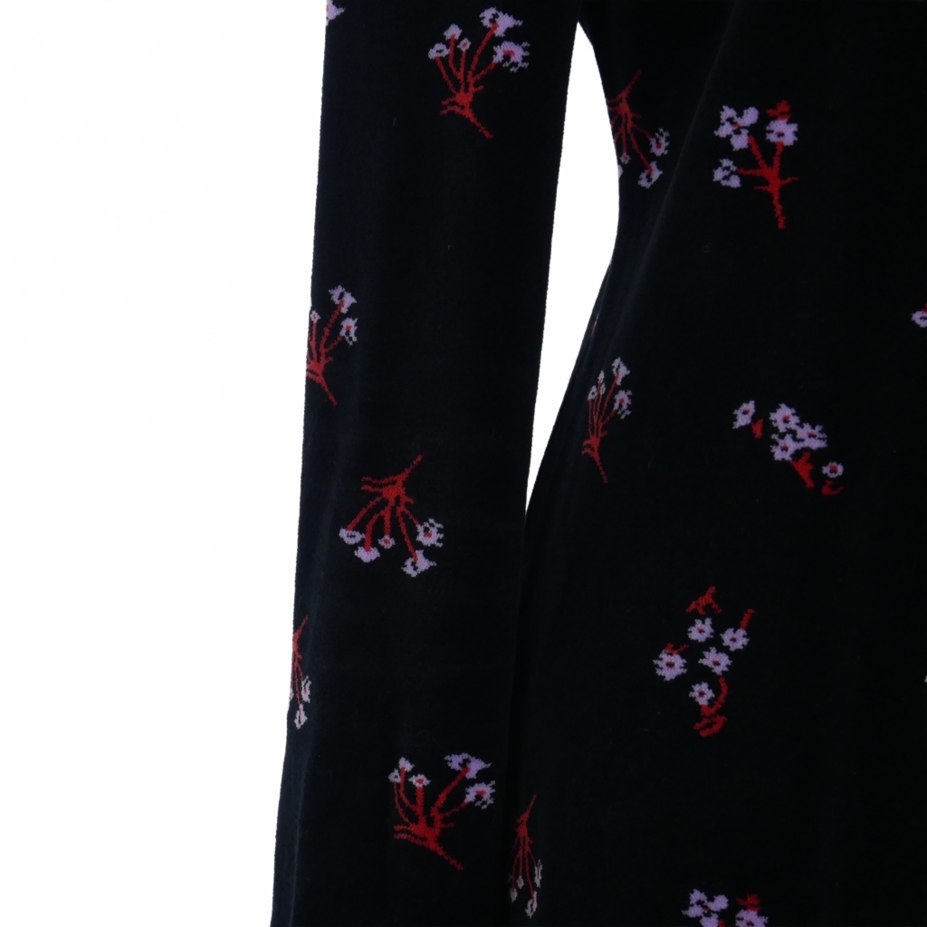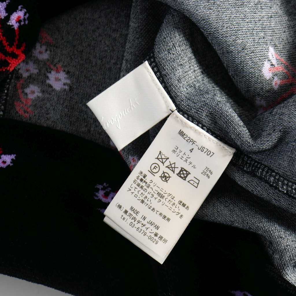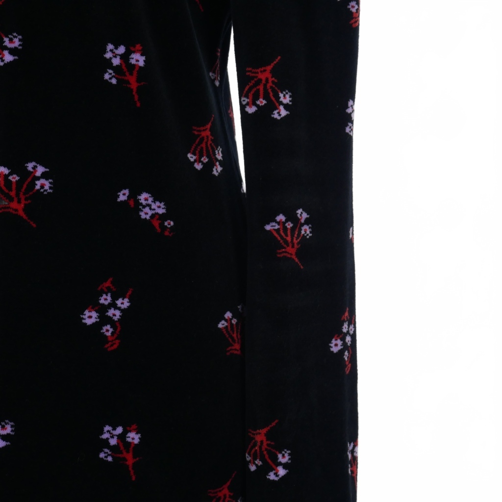マメクロゴウチ Mame Kurogouchi ベロア タートルネックトップス カットソー 長袖 サイズ4 花柄 ブラック 黒 MM22PF-JS707 レディース