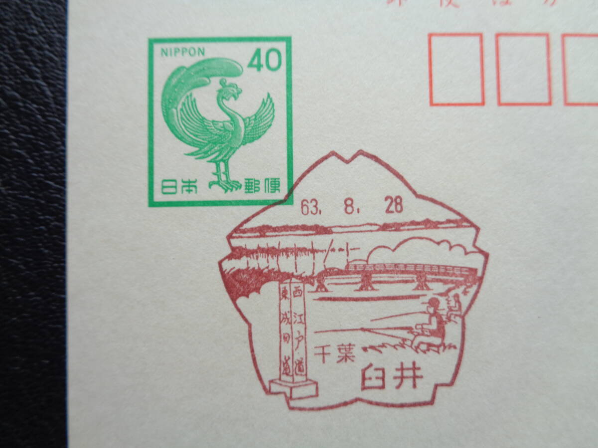 鳳凰はがき    初日印/風景印    千葉県2枚    佐倉新町/S63.8.28   臼井/S63.8.28
