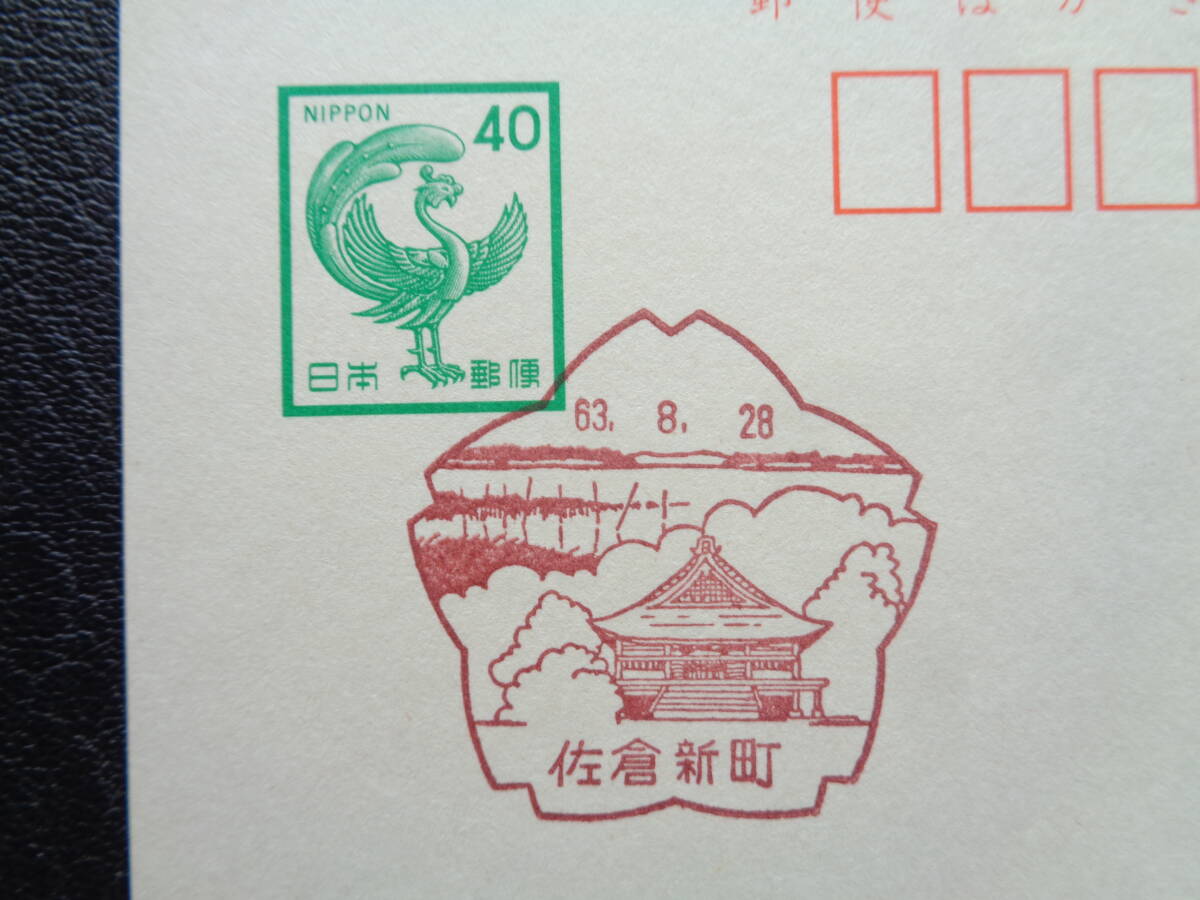 鳳凰はがき    初日印/風景印    千葉県2枚    佐倉新町/S63.8.28   臼井/S63.8.28