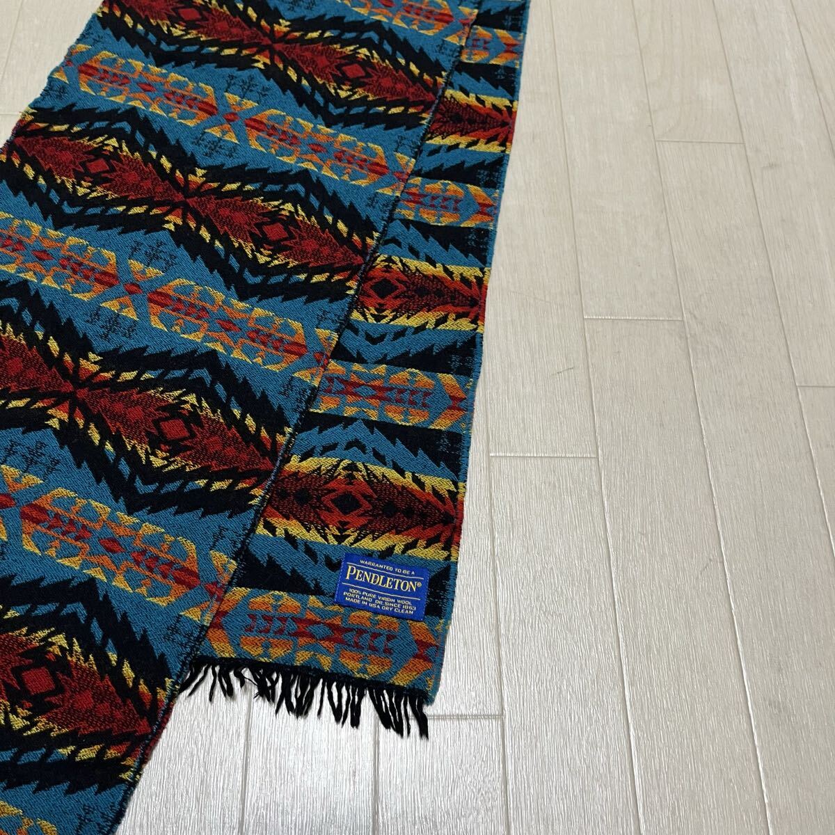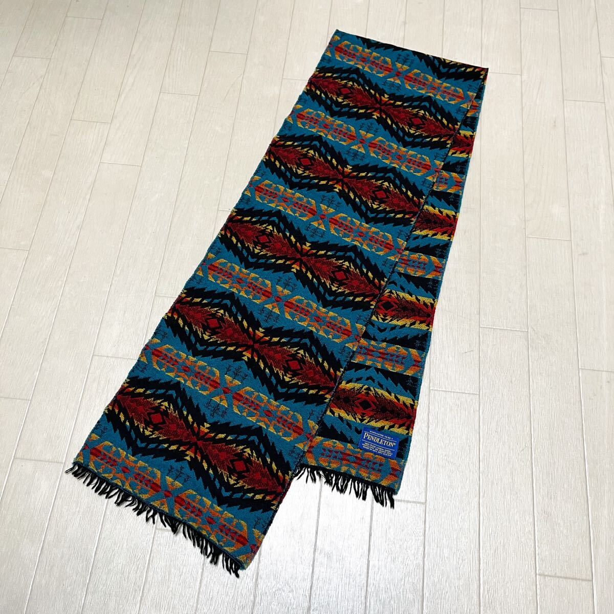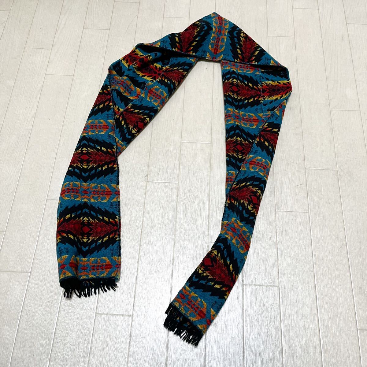 和855★ PENDLETON ペンドルトン USA製 マフラー 民族柄 ネイティブ ブルー ブラック ウール メンズ