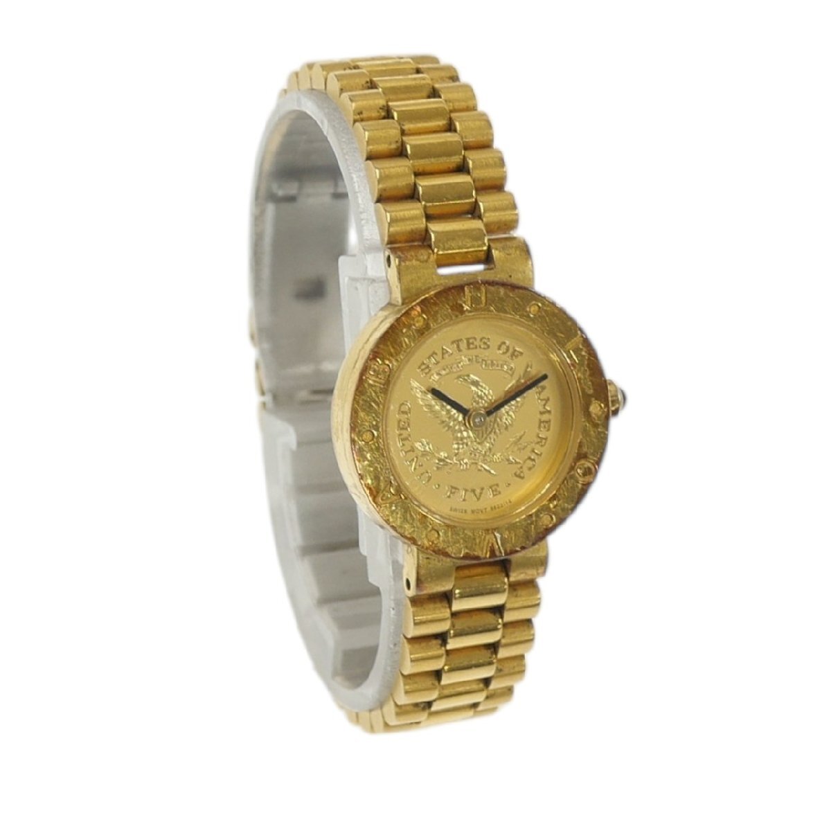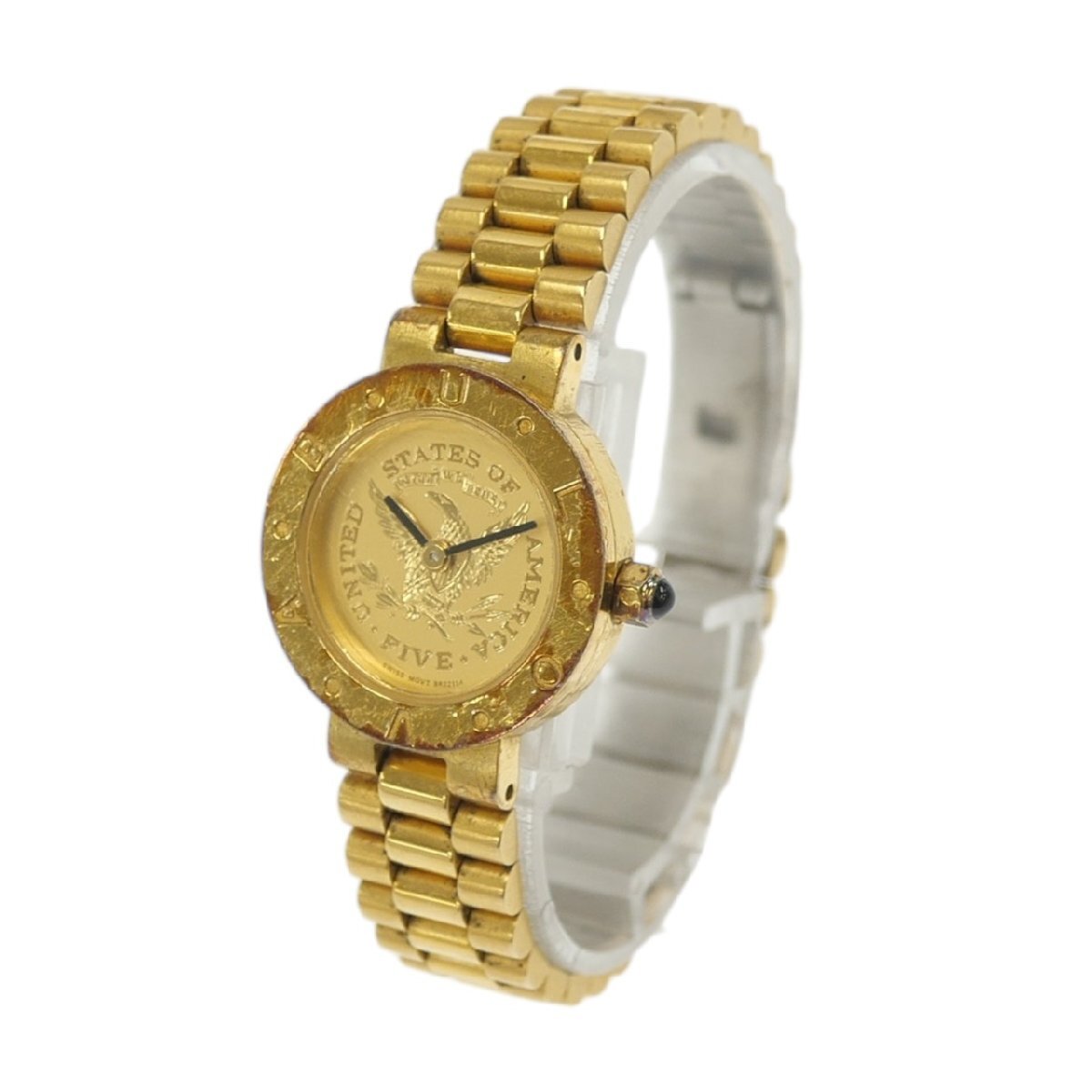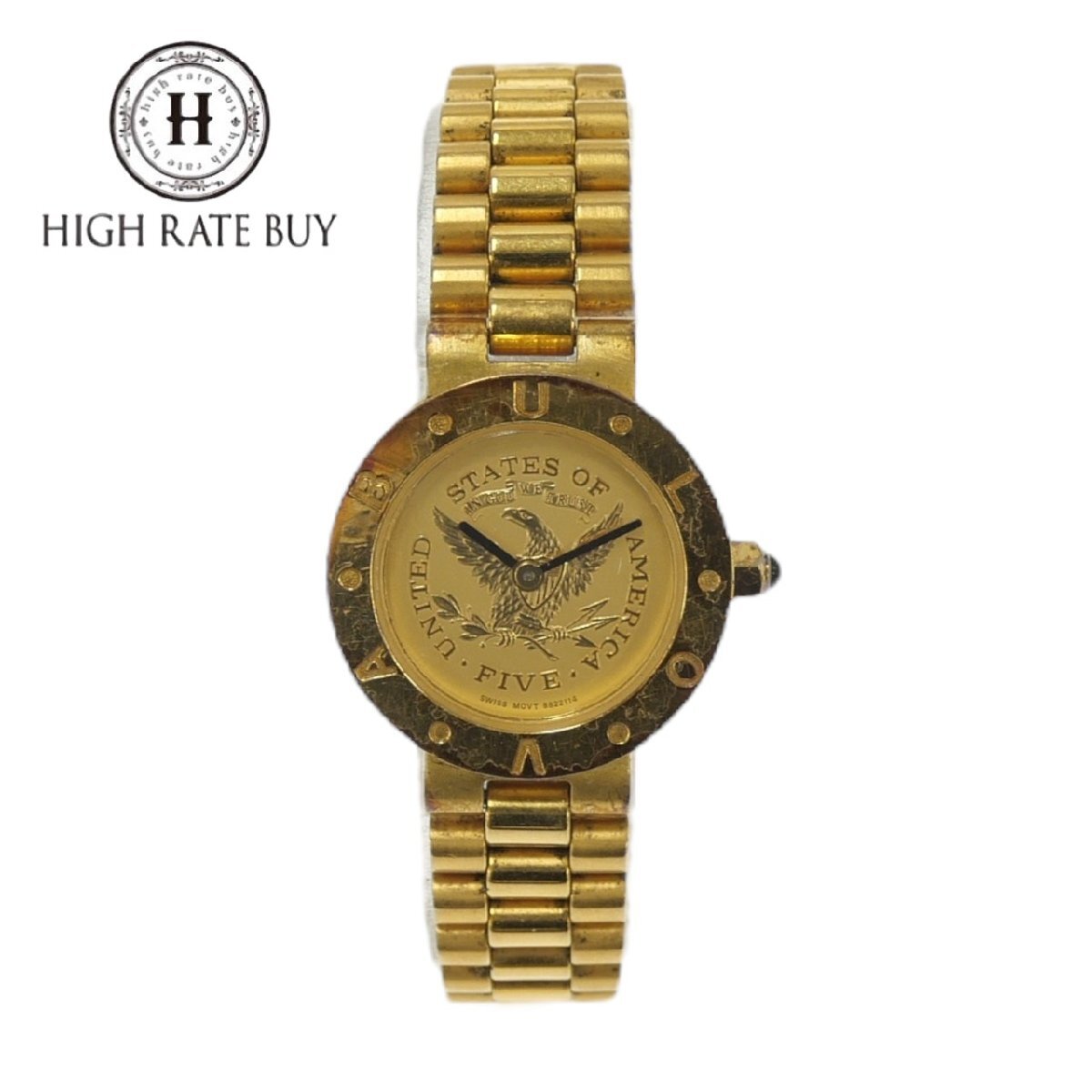 1円スタート 稼働品 BULOVA ブローバ STATES OF AMERICA レディース 腕時計 ラウンドフェイス クォーツ 2針 ゴールド文字盤