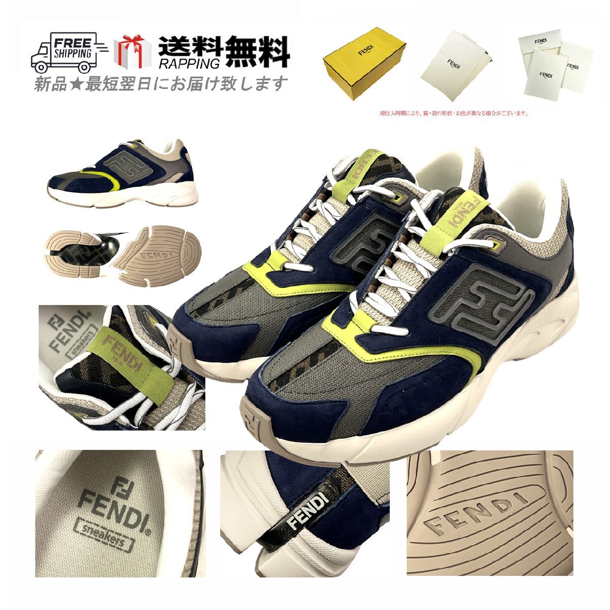 K873-7.. FENDI フェンディ スニーカー シューズ Faster Trainers FF メンズ ロゴ イタリア製 7E1555AKX6F1IY0 イタリア製 ★ ネイビー
