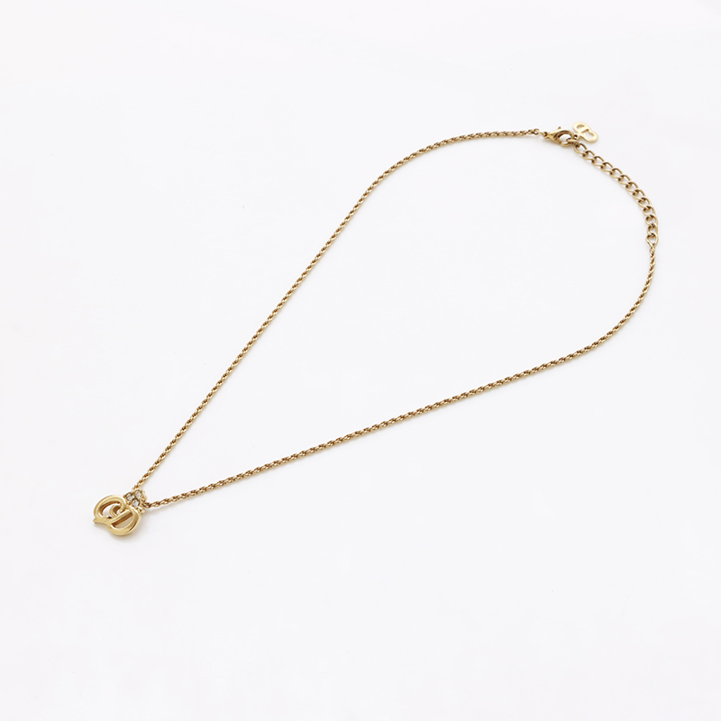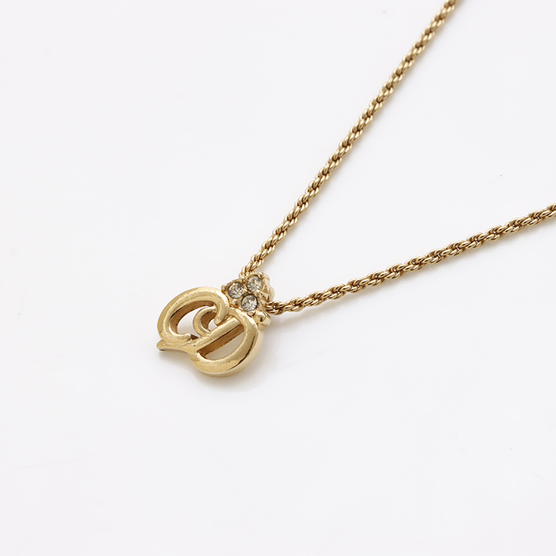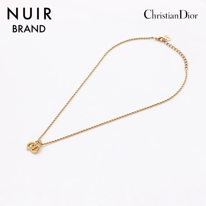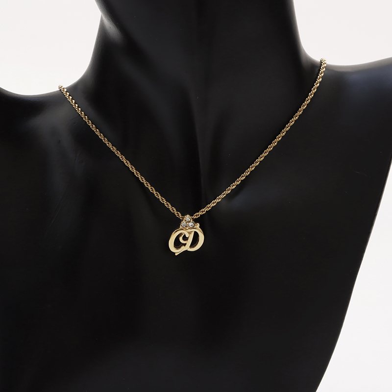 極美品 Christian Dior ヴィンテージ CDロゴ ラインストーン ネックレス ゴールド
