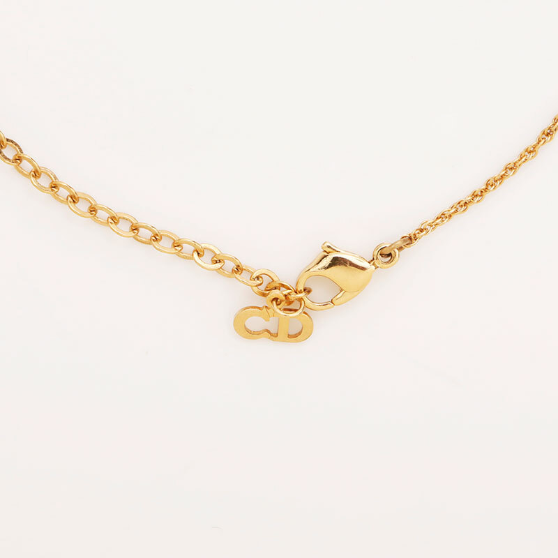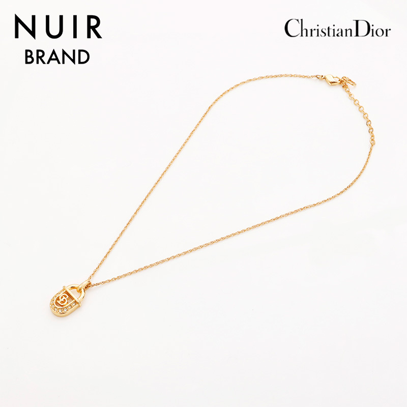 極美品 Christian Dior CD ロゴ ラインストーン ネックレス ゴールド