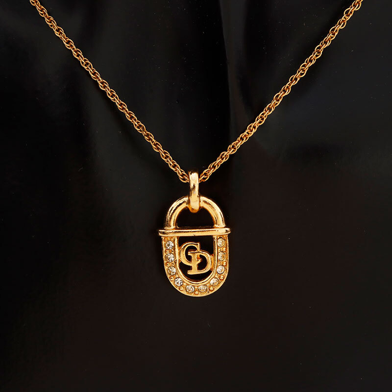 極美品 クリスチャンディオール Christian Dior CD ロゴ ラインストーン ネックレス ゴールド WS10080