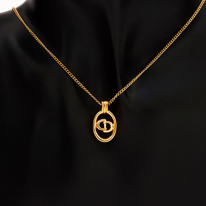 極美品 クリスチャンディオール Christian Dior CD ロゴ ネックレス ゴールド WS10086
