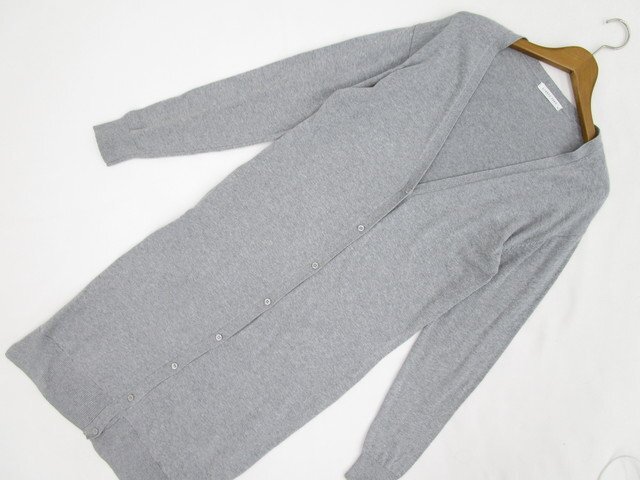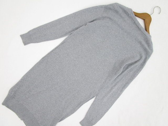 ドロップショルダー 長袖 洗えるニットロングカーディガン M ライトグレー杢