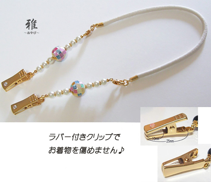 クリップ部分は滑らずしっかり袂をキャッチ出来る布地専用の特殊ゴム付きです。