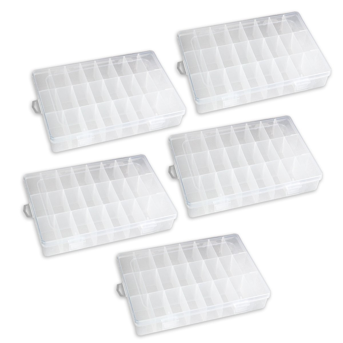 【新品即納】5個セット プラスチック パーツボックス 『横19.5cm 奥13.5cm 高さ3.7cm』 最大24口 仕切り 小物 ネジ ネイル ケース ホビー