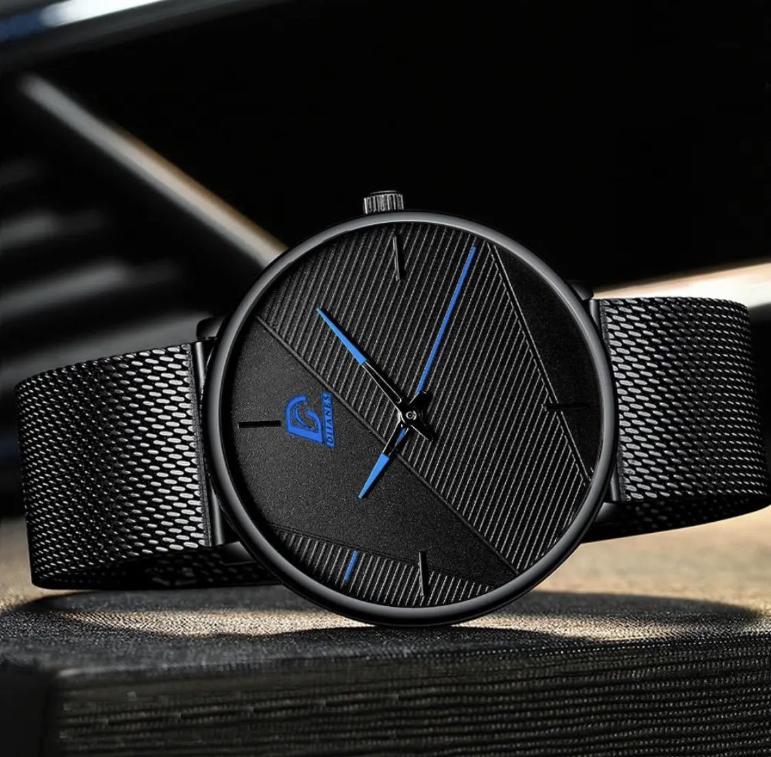 腕時計 男性 超薄型 ステンレス鋼 ステンレスベルト クォーツ腕時計 ブルー