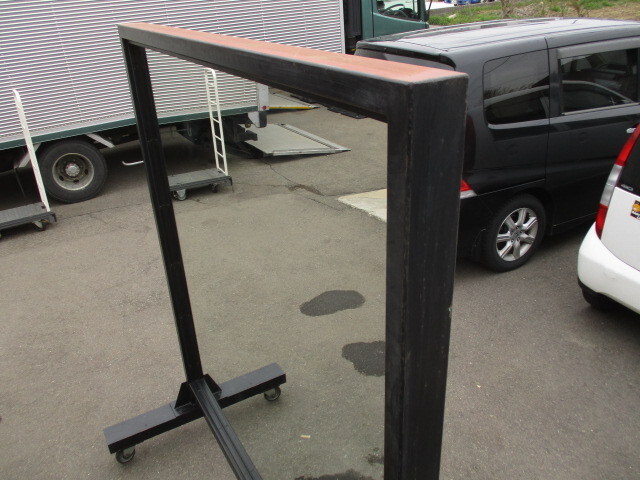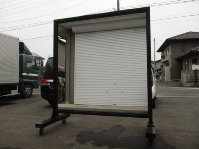 F666◆【自社便配送可能】◆①H210cm×W187,5cm◆キャスター付き◆貴重な特大サイズの古い鉄枠ミラー◆鏡 姿見 ダンススタジオ 工業系伊