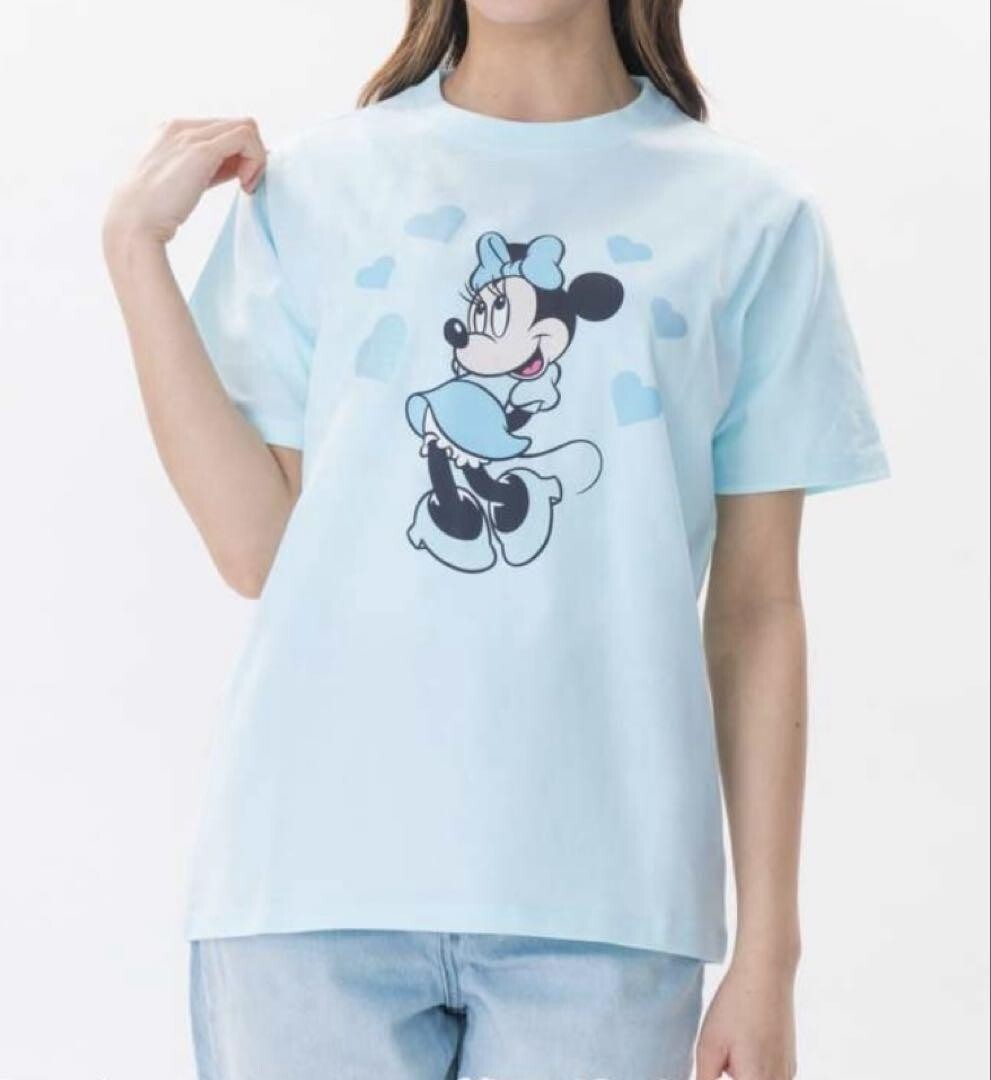 ブルーのお洋服がかわいい「ミニーマウス」がデザインされたTシャツ。