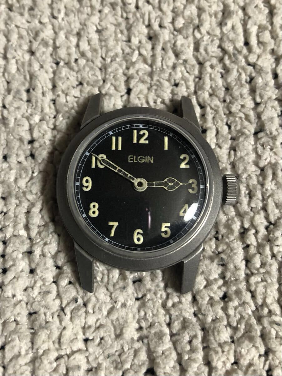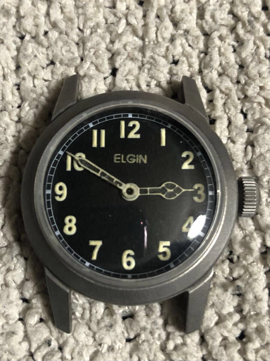 残念ながら修理しても直らず稼働いたしませんが、ヴィンテージ/ビンテージのエルジン、ミリタリーウォッチとなります。