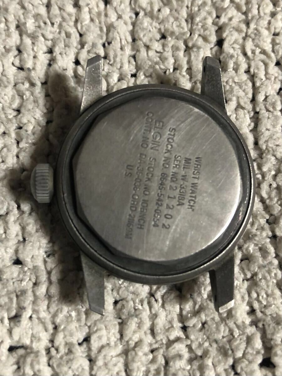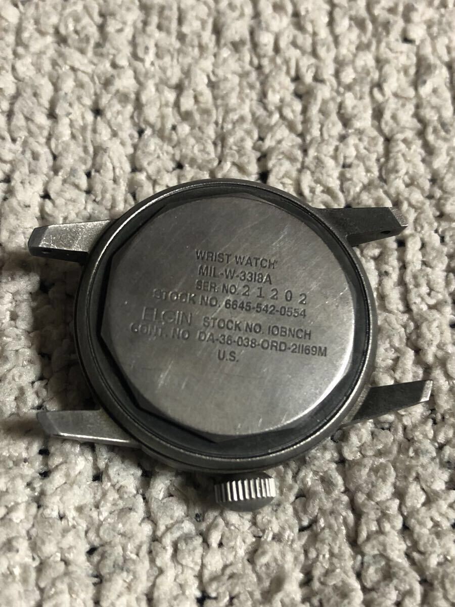ヴィンテージ/ビンテージ!!難あり、修理に出しましたが直らず!!アクセサリーとして!!貴重!!USA製!!ミリタリーウォッチ!!U.S ARMY/ELGIN/エルジン!!MILーWー3318A/SER.NO.21202/アンティーク/ミリタリーウォッチとなります。