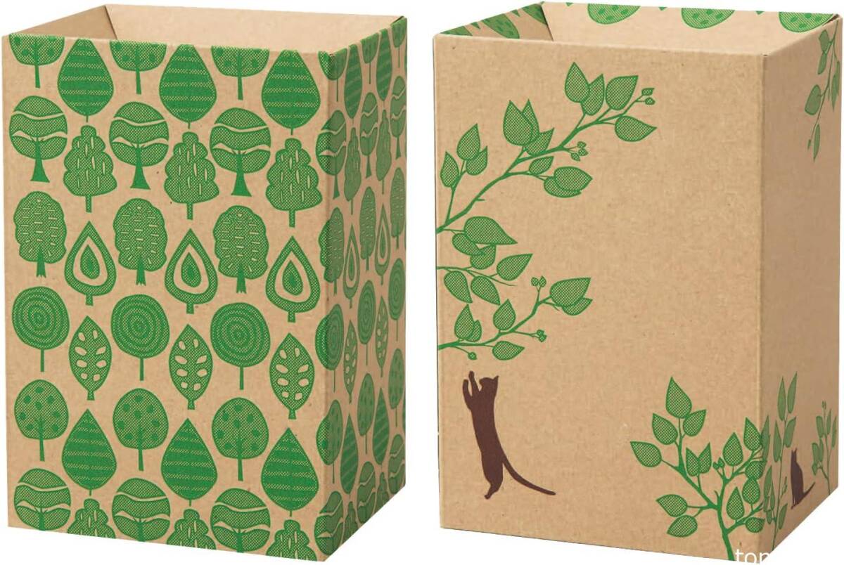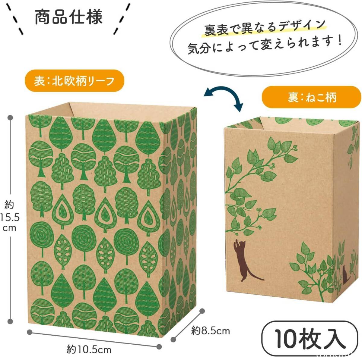 かわいい北欧柄リーフと猫柄の表裏違うデザインなので気分に合わせて使える、使い捨てのエチケットボックス