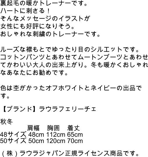 ラウラフェリーチェ 秋冬 裏起毛トレーナー こちらはホワイト系 50サイズの出品です。 詳細は画像参照 質問はお気軽にどうぞ ラウラジャパン正規ライセンス商品です。