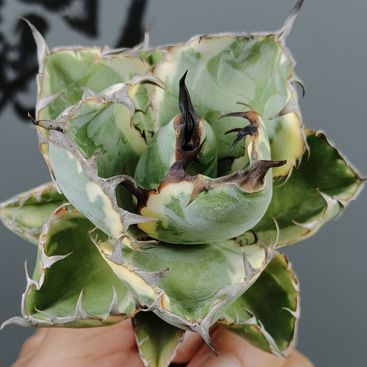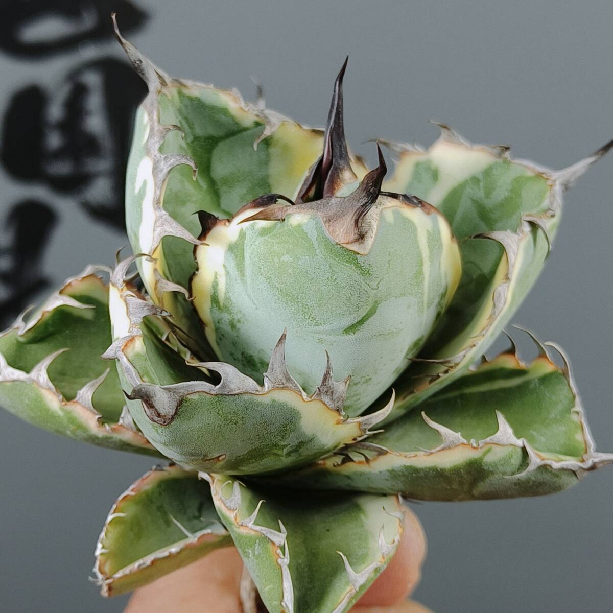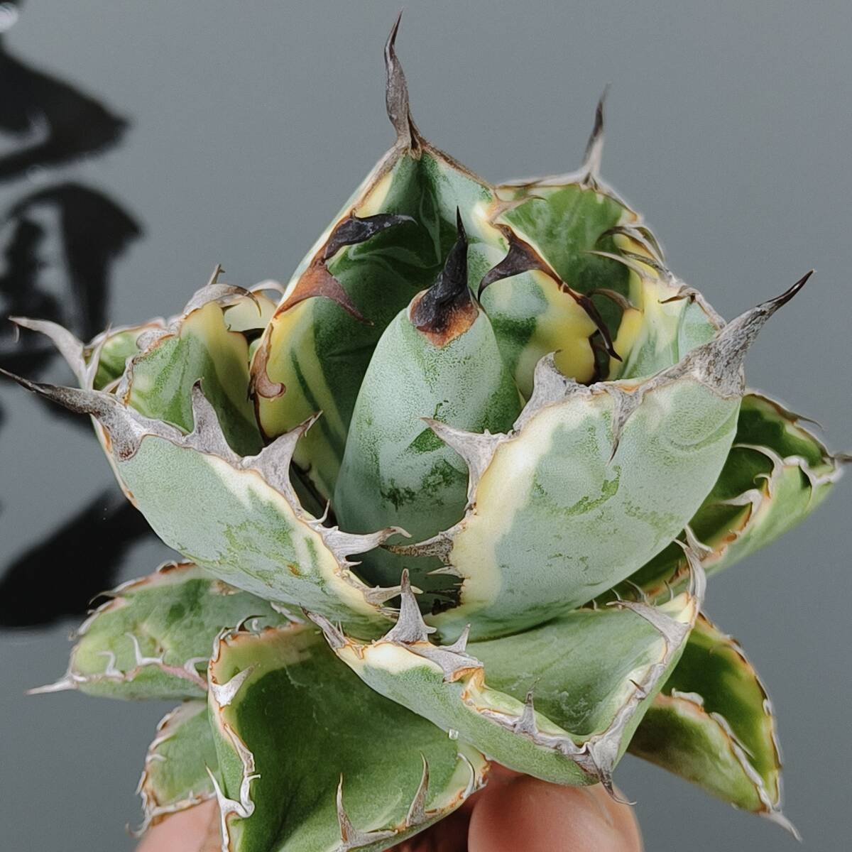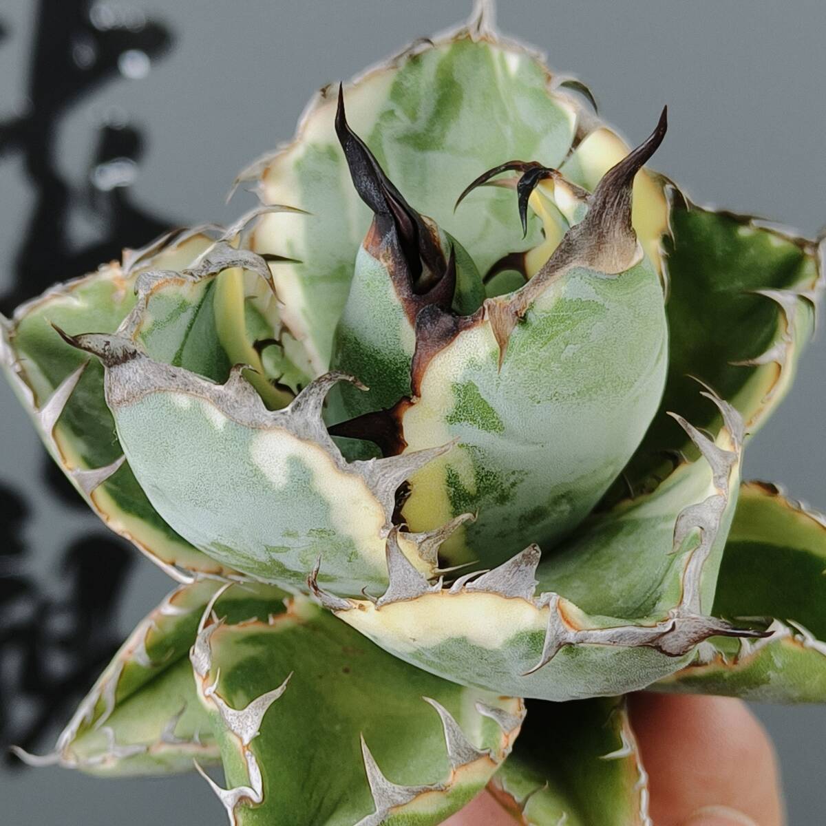 【龍園觀】No.W37特選 アガベ チタノタ "BB錦" ブラックアンドブルー 白覆輪錦 濃黒棘 超強棘 包葉型