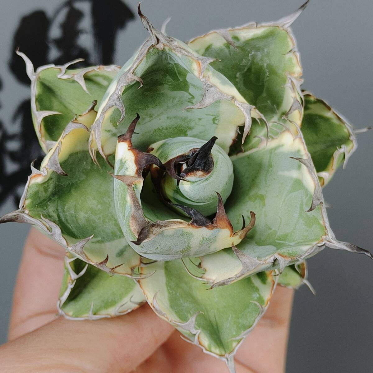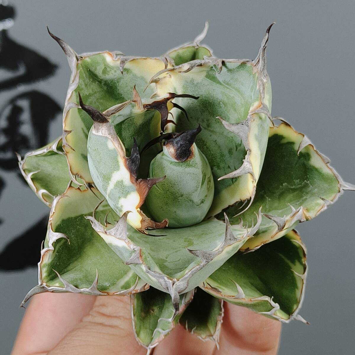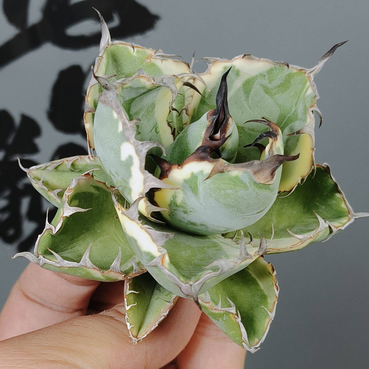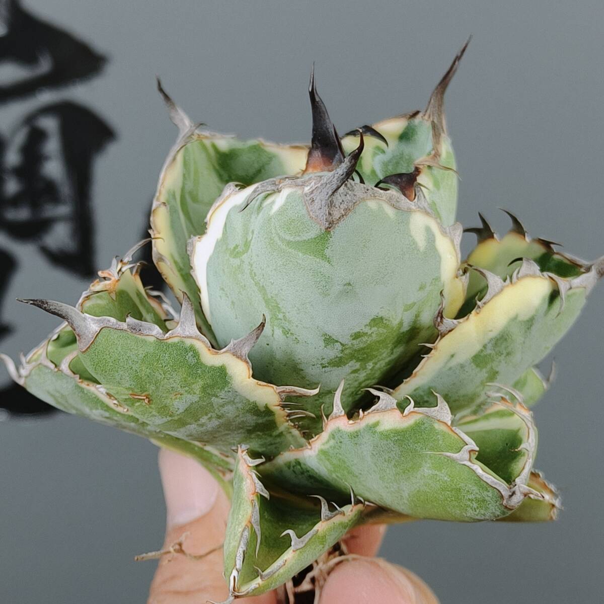 【龍園觀】No.W37特選 アガベ チタノタ "BB錦" ブラックアンドブルー 白覆輪錦 濃黒棘 超強棘 包葉型