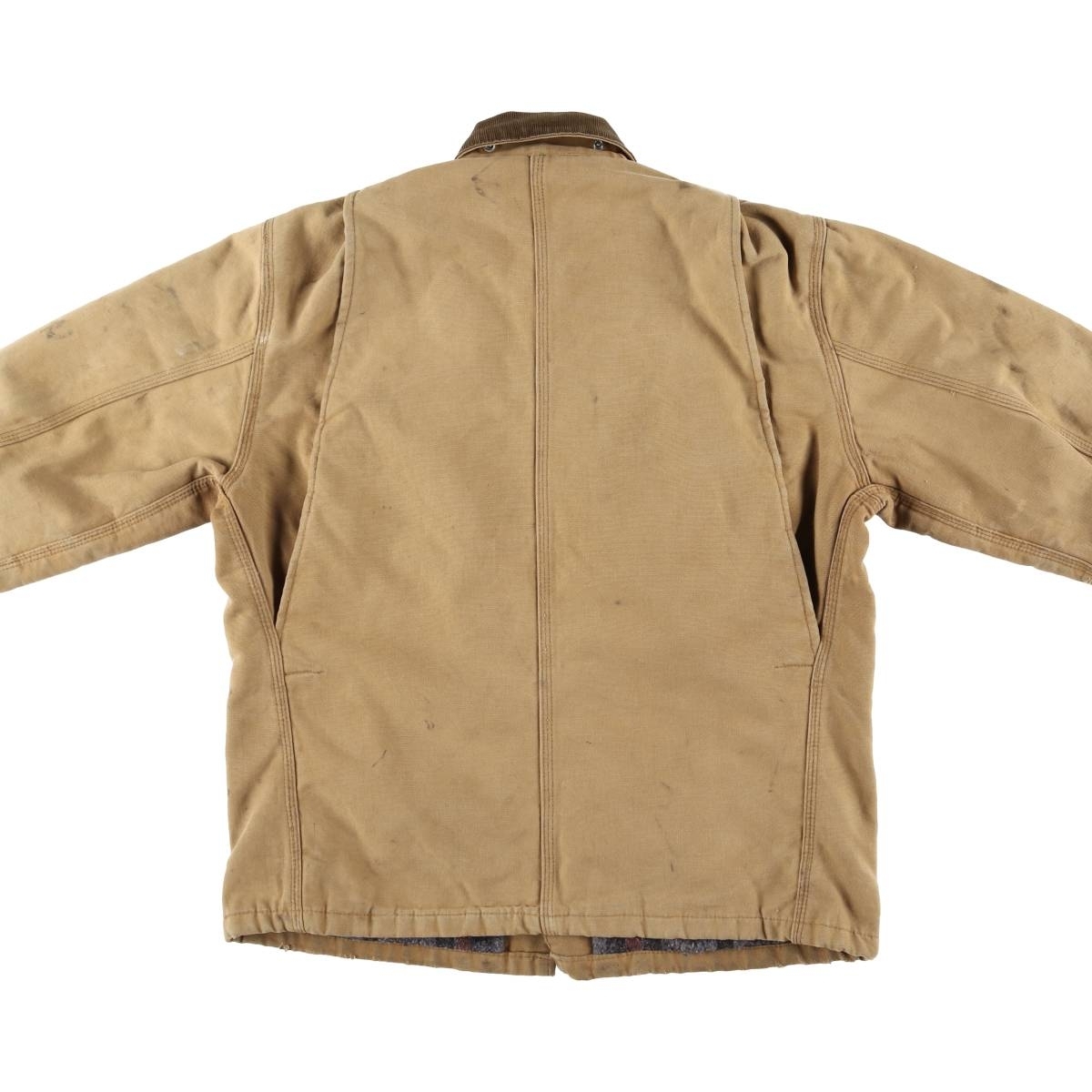 着用感: メンズXL 表記サイズ: 不明 着丈: 70.5cm 身幅: 62cm 肩幅: 51cm 袖丈: 58cm ![]() | ![]() ランク:C USEDワークアイテムですので使用感などございますが、まだまだご愛用していただけます。 古着という事をご理解の上ご注文よろしくお願いします。 【状態追記】 ●全体、汚れ ●前、両腹部・裾全体・両袖先に擦れ ●前、左袖に裂け ●前、腹部に糸抜け ●後、襟ぐり・右袖・両袖先・両裾に擦れ ●内側全体に毛玉・毛羽立ち ●内、両胸・両腹部・裾全体・両袖に汚れ ●内、裾全体に擦れ ●前内側、全ポケット内に汚れ |