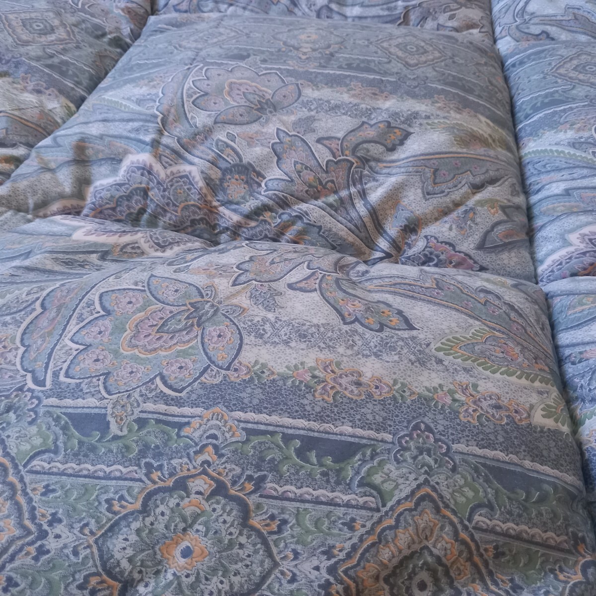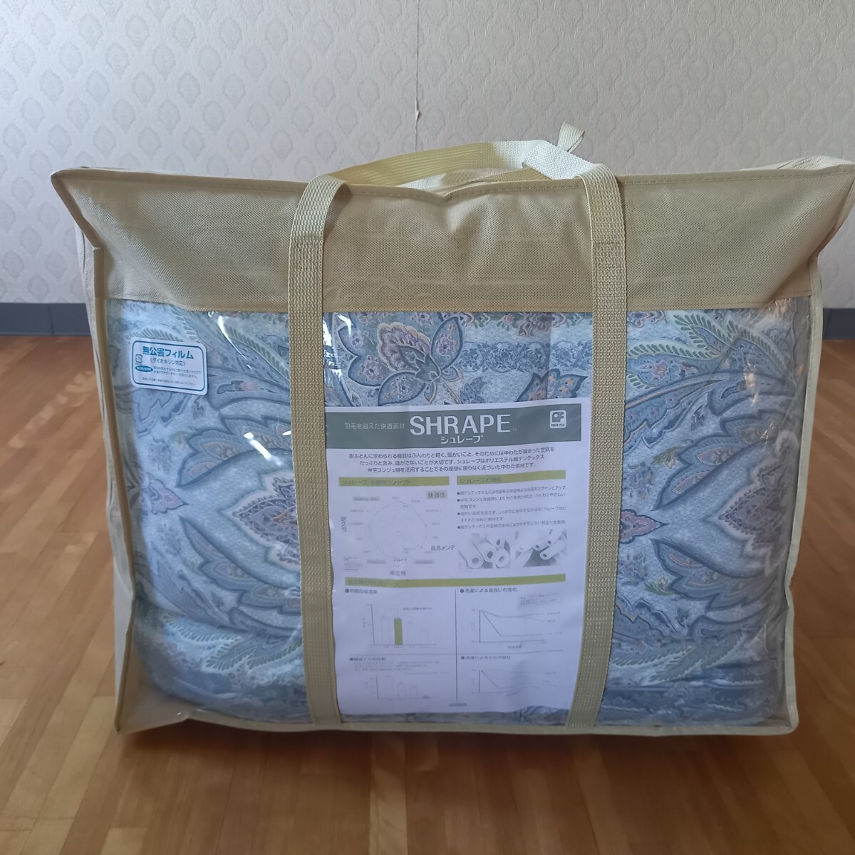 中わたは東洋紡 岩国工場で生産した極細ポリエステル繊維 シュレープを100%を使用しておりますので、羽毛のような保温性を実現し ほこりなどが少なく、体を包み込むようなドレープ性に優れております。