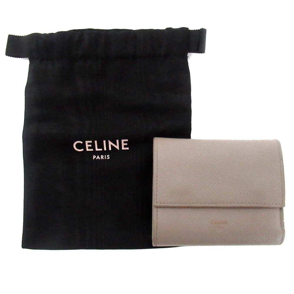 美品 CELINE セリーヌ スモール トリフォールド コンパクトウォレット 三つ折り財布 札入れ カード入れ 小銭入れ グレージュ