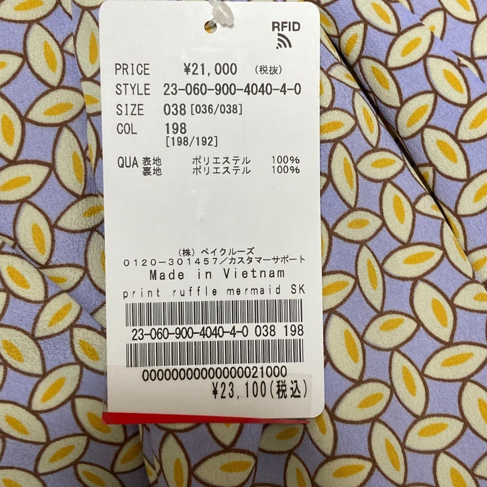 商品名:23AW IENA イエナ プリントラッフルマーメイドスカート サイズ38 ライトパープル