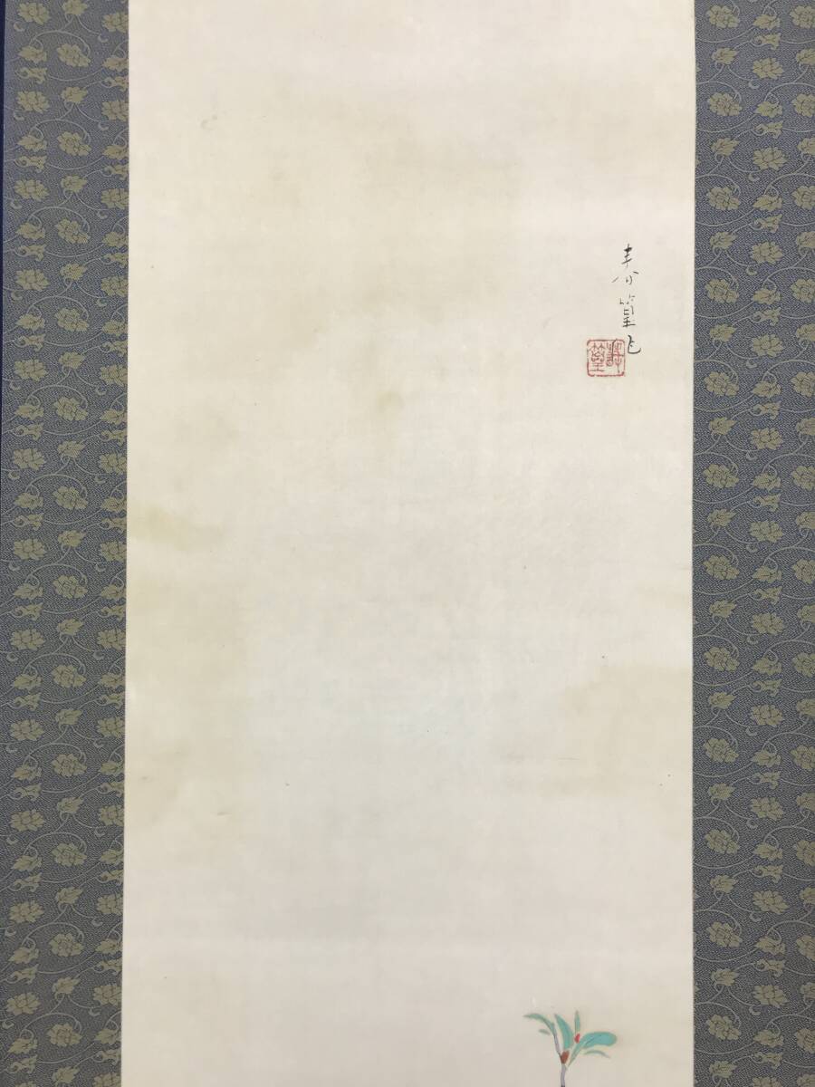 【作品状態】 本紙は絹本肉筆です。本紙は薄汚れ、多少の汚れシミあります。表装は概ね良好です。