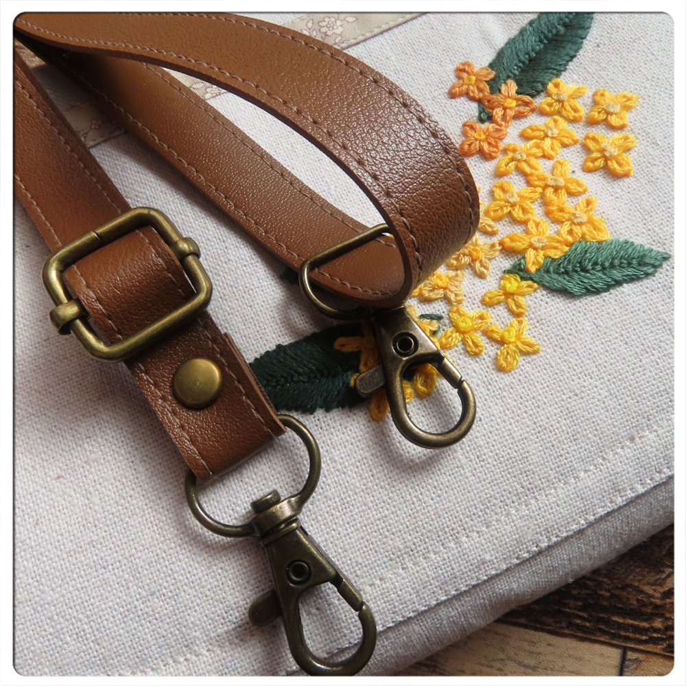 セットのショルダー紐は柔らかい合皮の茶色に、左右ステッチを入れて作成しました*^-^*