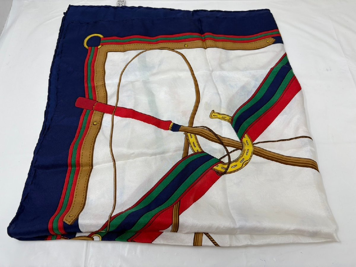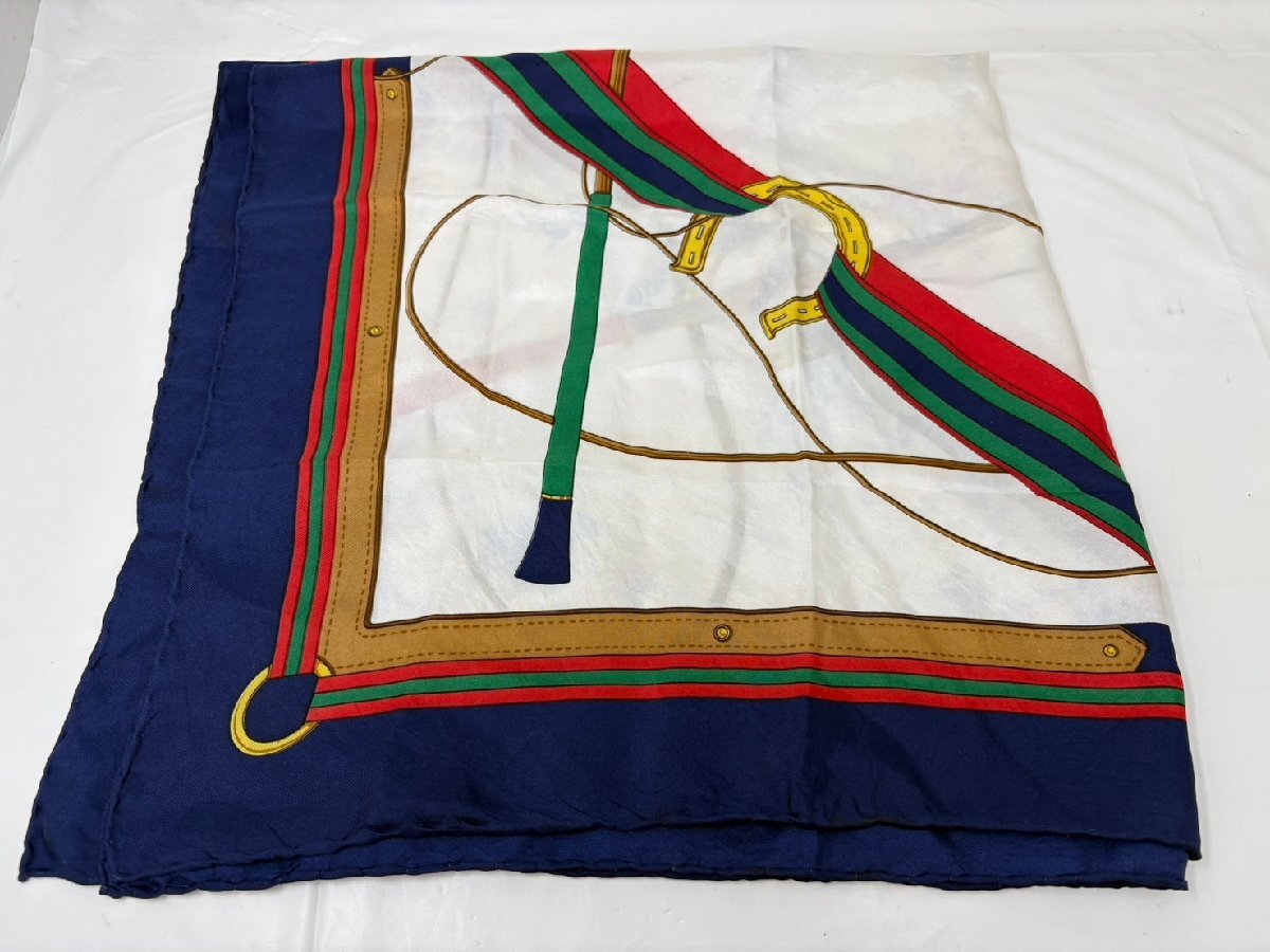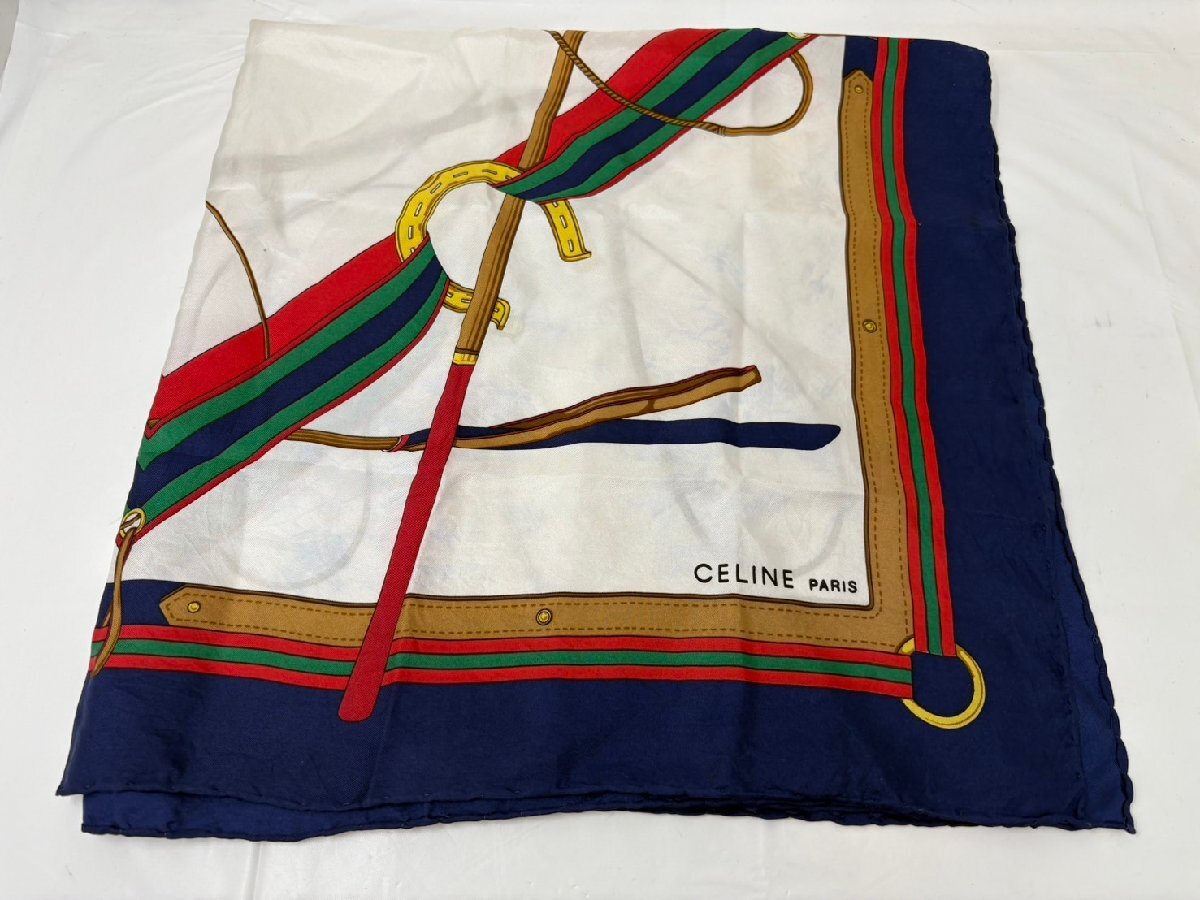 ◆CELINE セリーヌ スカーフ ネイビー×ホワイト 馬具柄 中古 現状◆18542