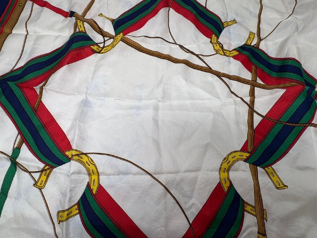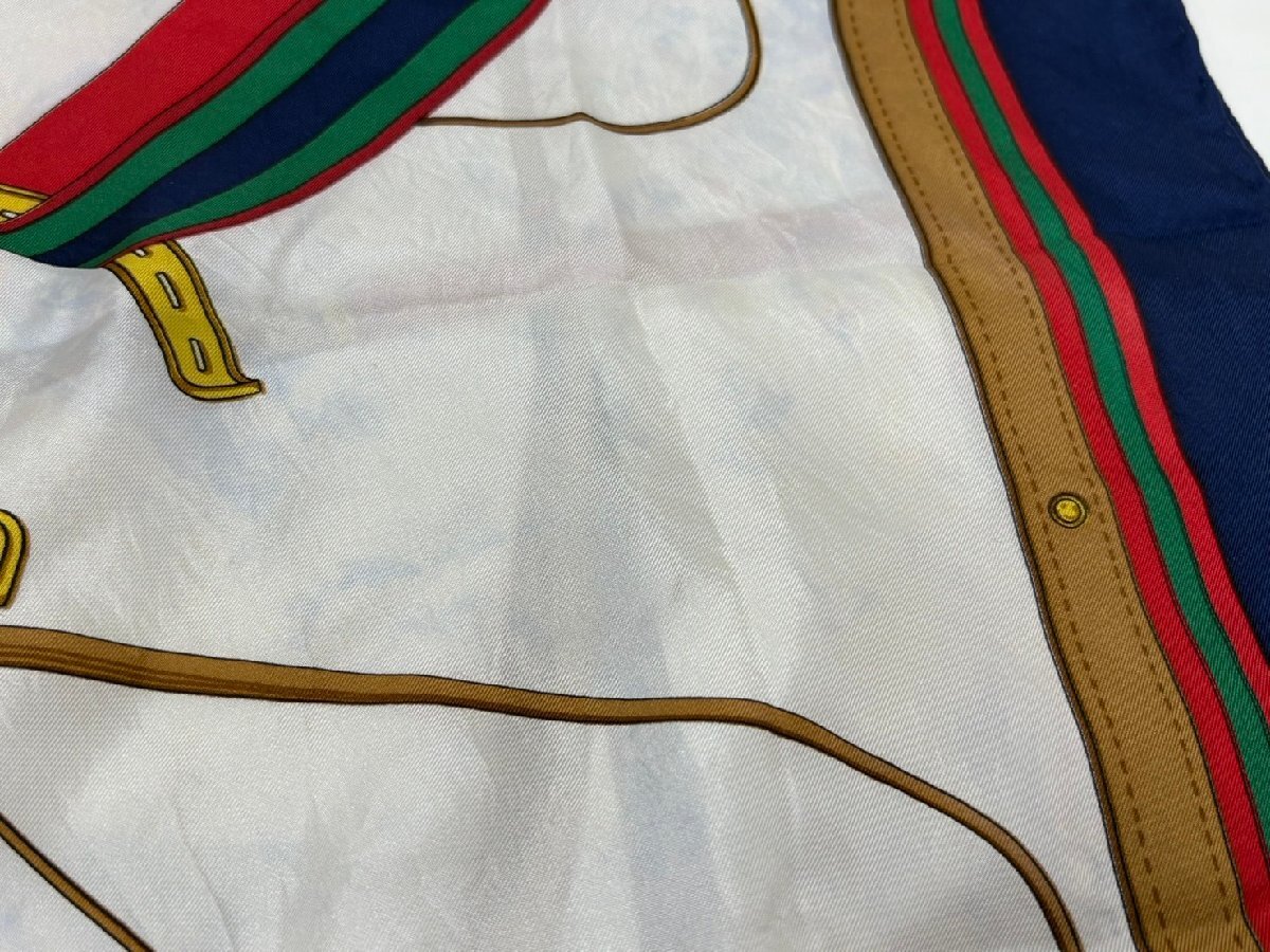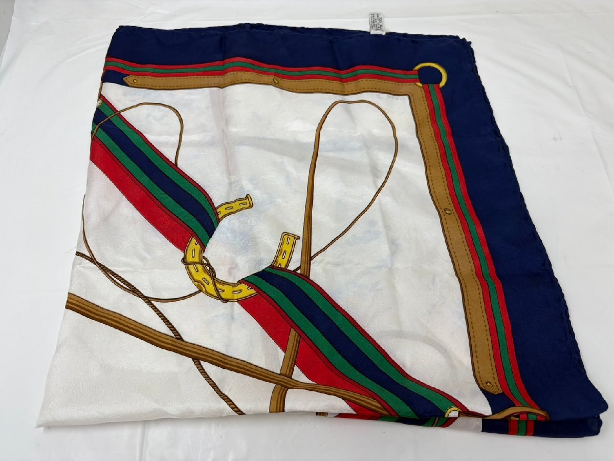 ◆CELINE セリーヌ スカーフ ネイビー×ホワイト 馬具柄 中古 現状◆18542