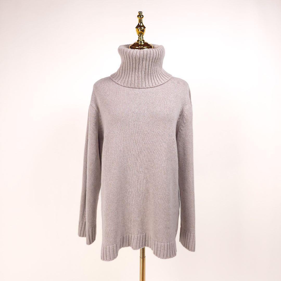 【極美品】フォクシー カシミヤ混 ケーブル編み タートルネック ニット 40 ライトグレー FOXEY ウール
