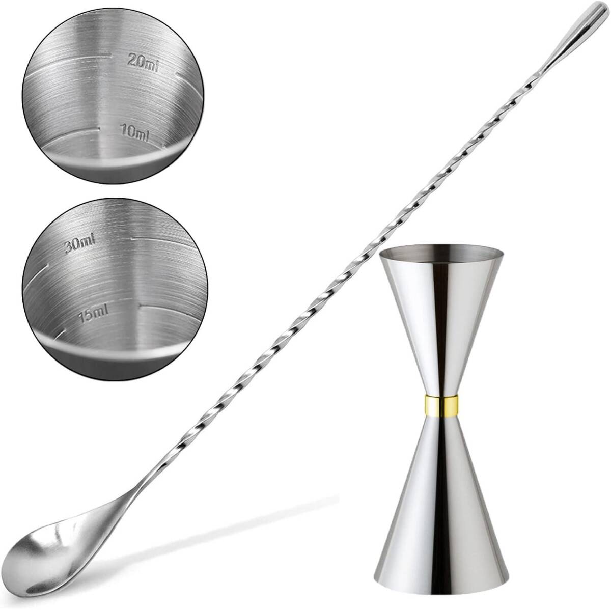 桜花直郵 【日本食品規格検査済み】 30ml/45mlジガーカップとバースプーンセット30ml / 45mlオンスカップ目盛り付き