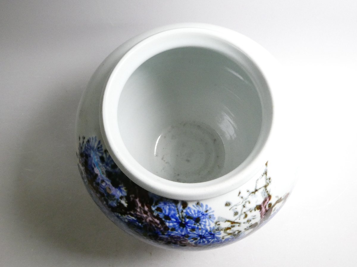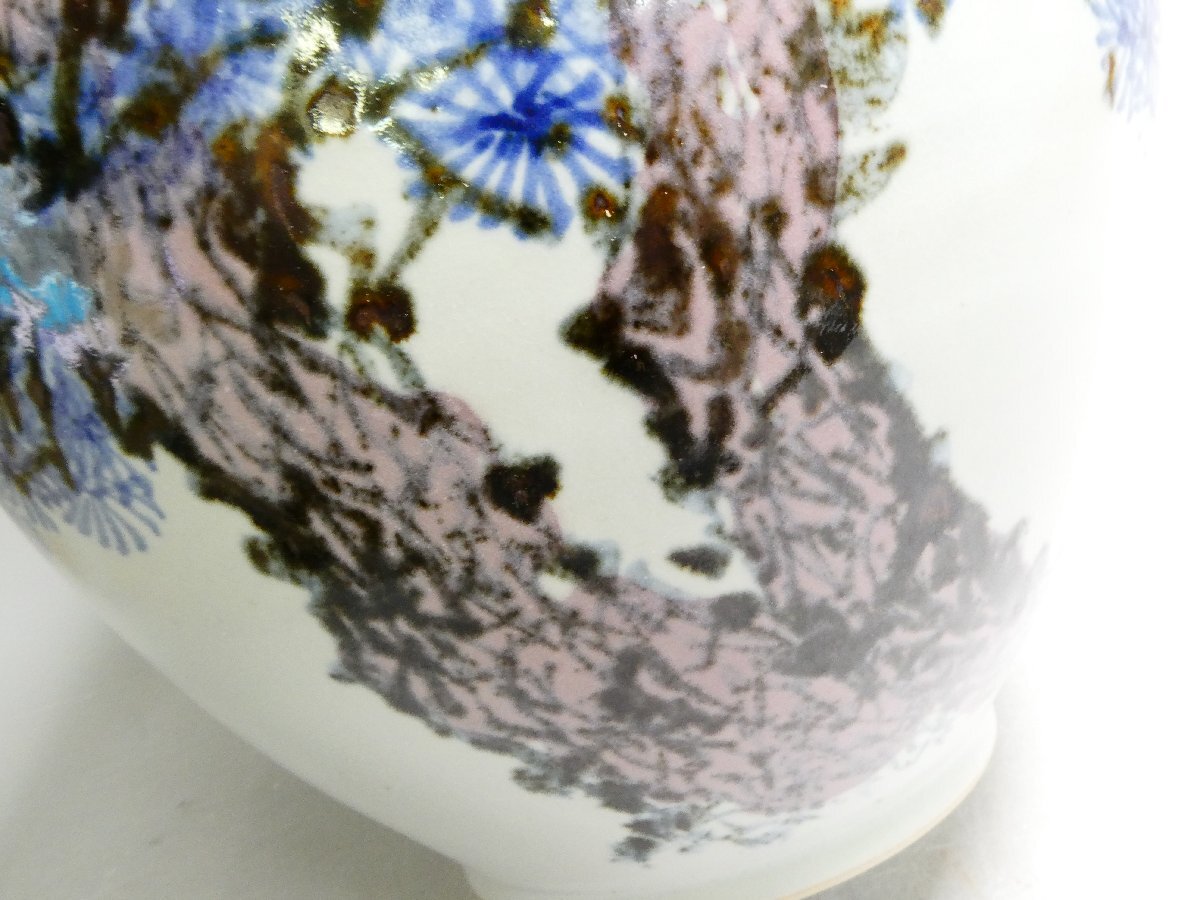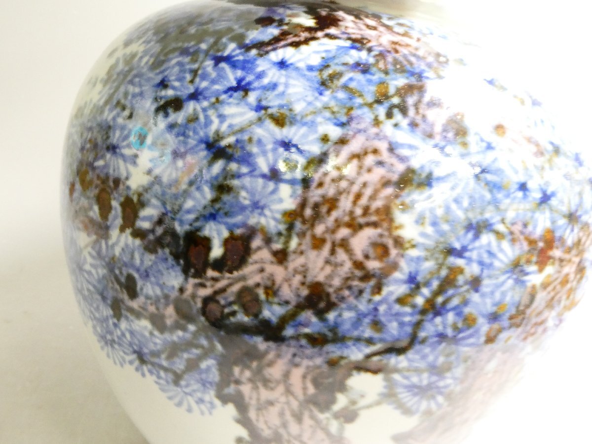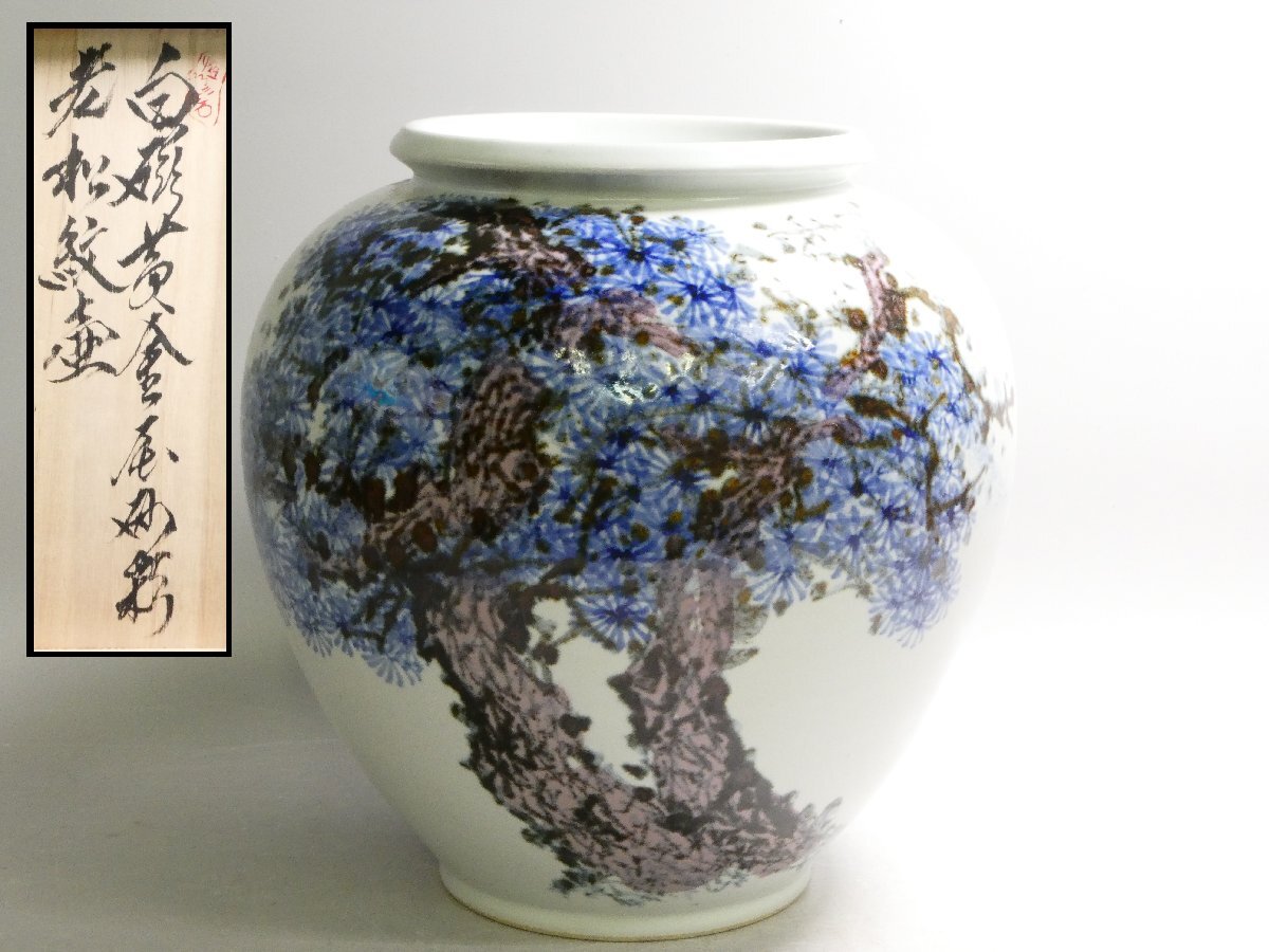 100734 韓国名工【恒山 林恒澤】造 白磁 辰砂彩 老松紋 壺 共箱