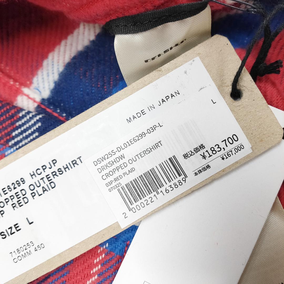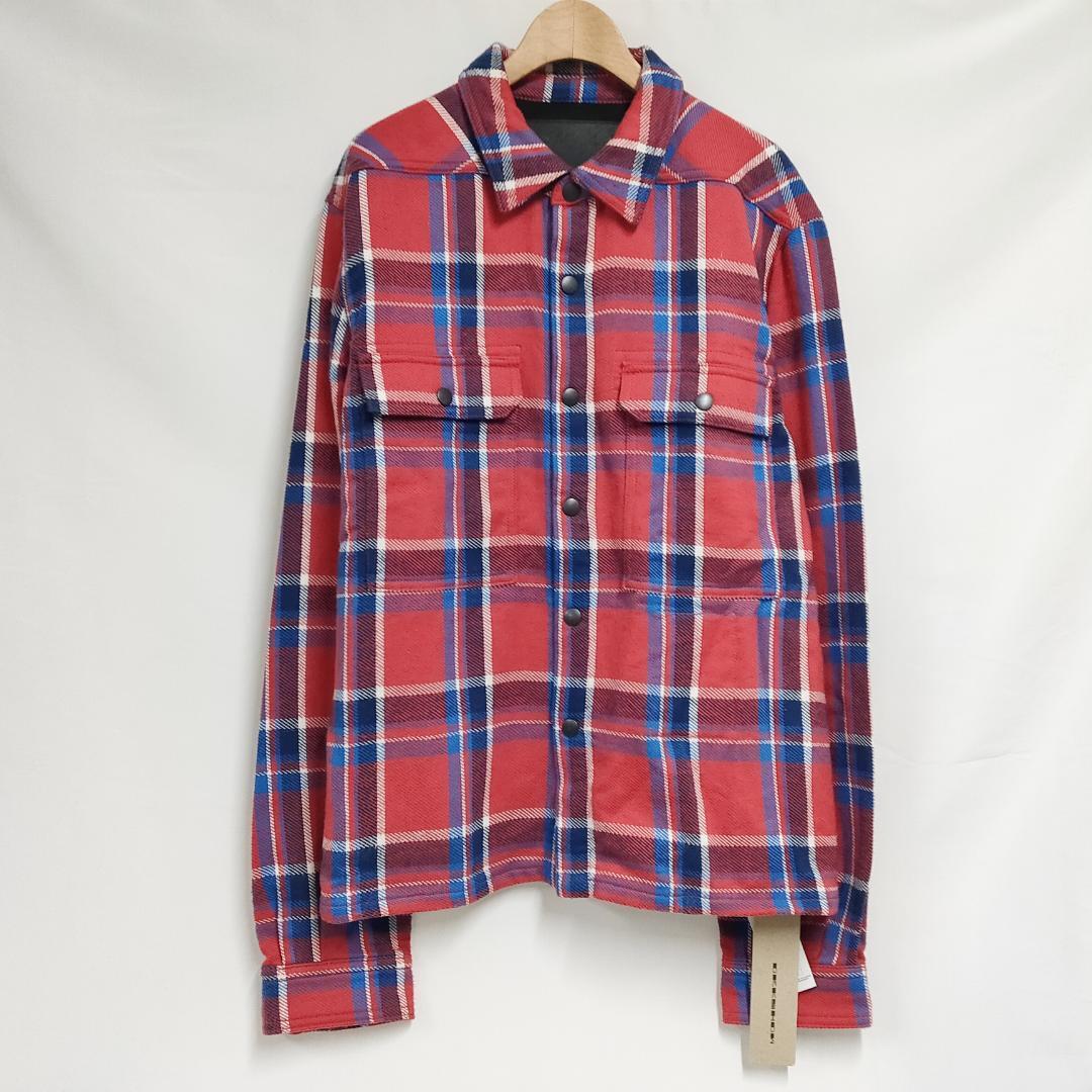 ○★新品 未使用 リックオウエンス ダークシャドウ クロップドアウターシャツ L【RICK OWENS DRKSHDW】レッド シャツアウター○●