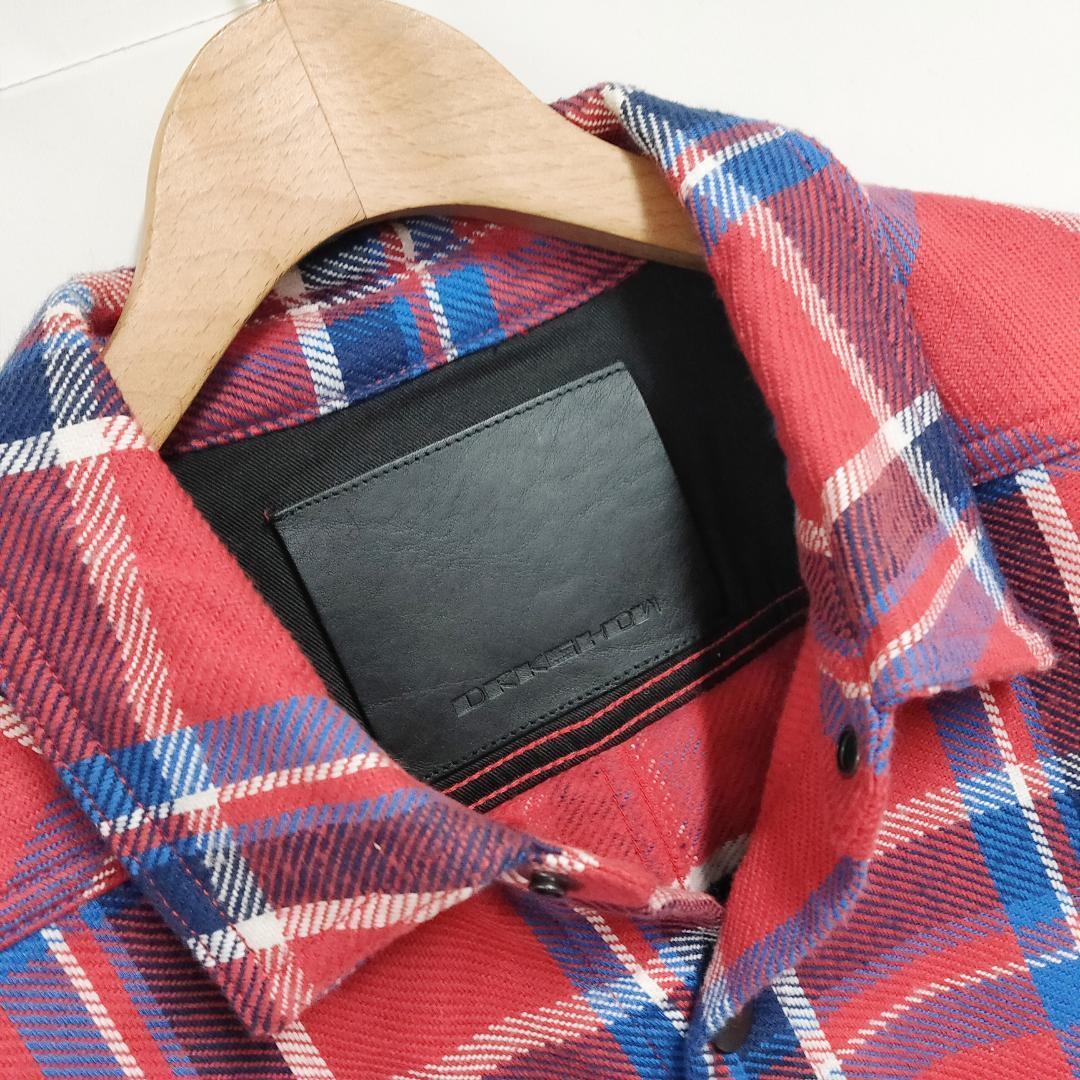 Rick Owensのカジュアルライン「DRKSHDW」から登場したチェックシャツジャケット。程よい厚みのあるフランネル生地で仕立てられており、アウターとしてはもちろん、インナーシャツとしても着用可能。フロントにはスナップボタンを採用し、左右の胸ポケットがアクセントになっています。レッドを基調にブルーとホワイトのチェック柄が映える一着で、シンプルなインナーやブラックパンツと合わせるだけでコーデが完成します。デイリーユースからモードなスタイルの外しアイテムまで幅広く活躍。