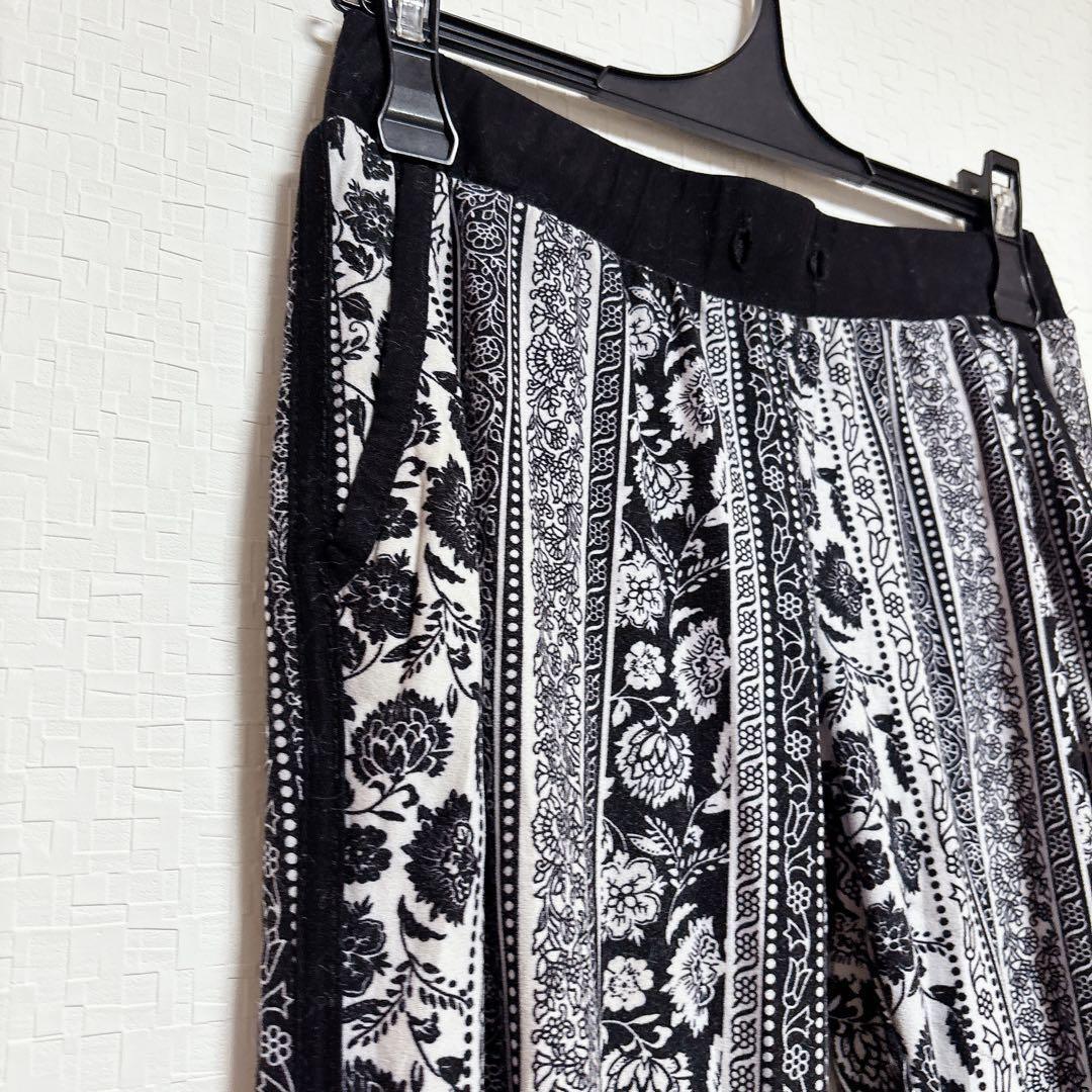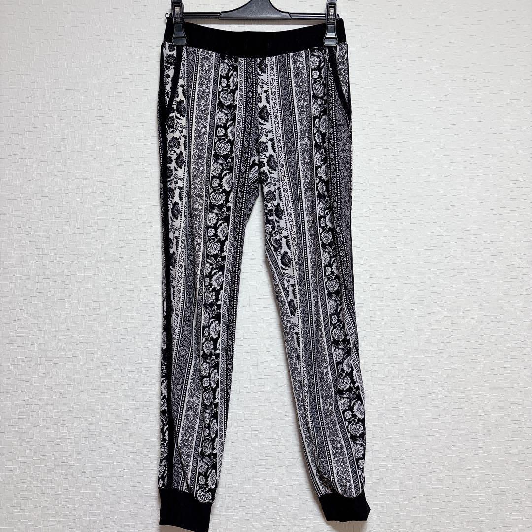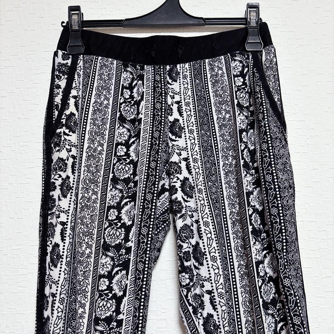 ブラックとホワイトのストライプデザイン、ポケット付きの快適なパンツ。