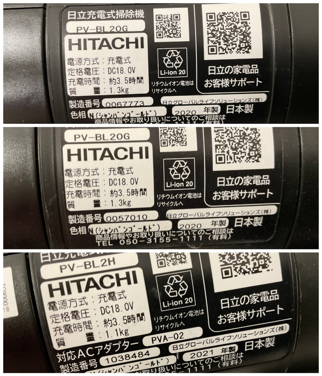 【J756】ジャンク品 HITACHI PV-BL2H/PV-BL20G 3台 動作確認・簡易清掃済み 日立 まとめ売り | |||