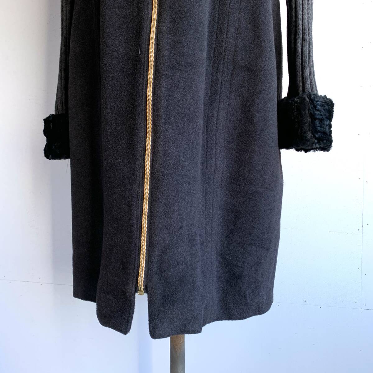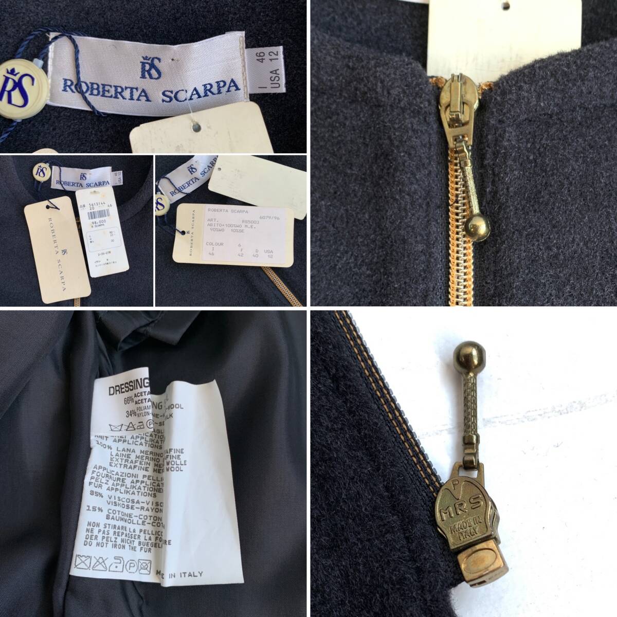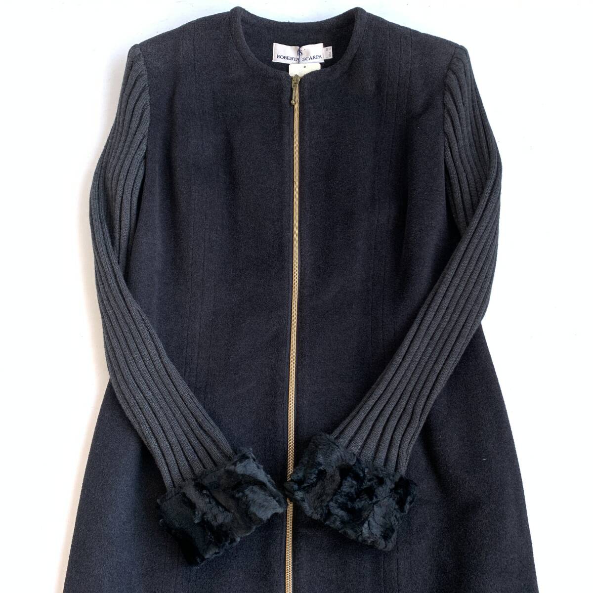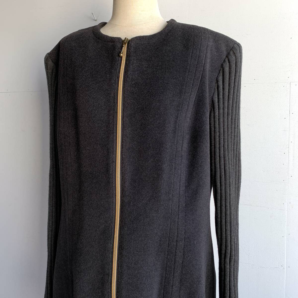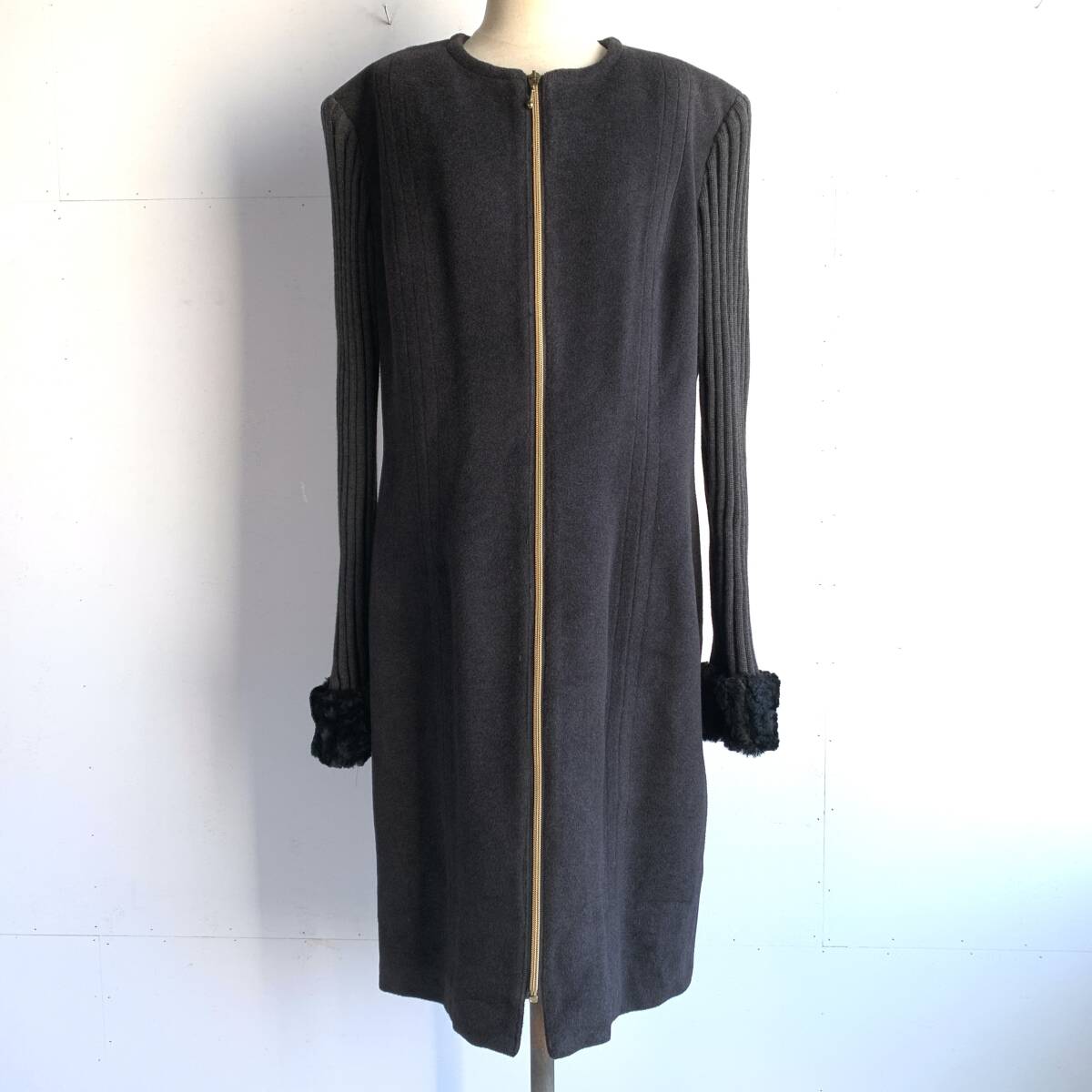 ☆未使用 ROBERTA SCARPA イタリア製 Vintage 98,000円  毛×絹 ウール×シルク リブニット袖切り替えコート ワンピース ダークグレー系 46【送料一律/同梱可能】Jの出品です。