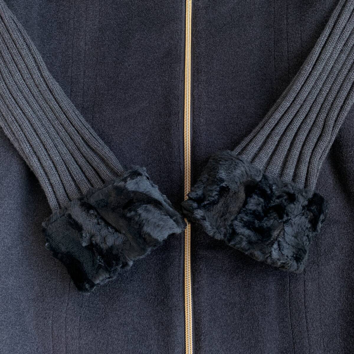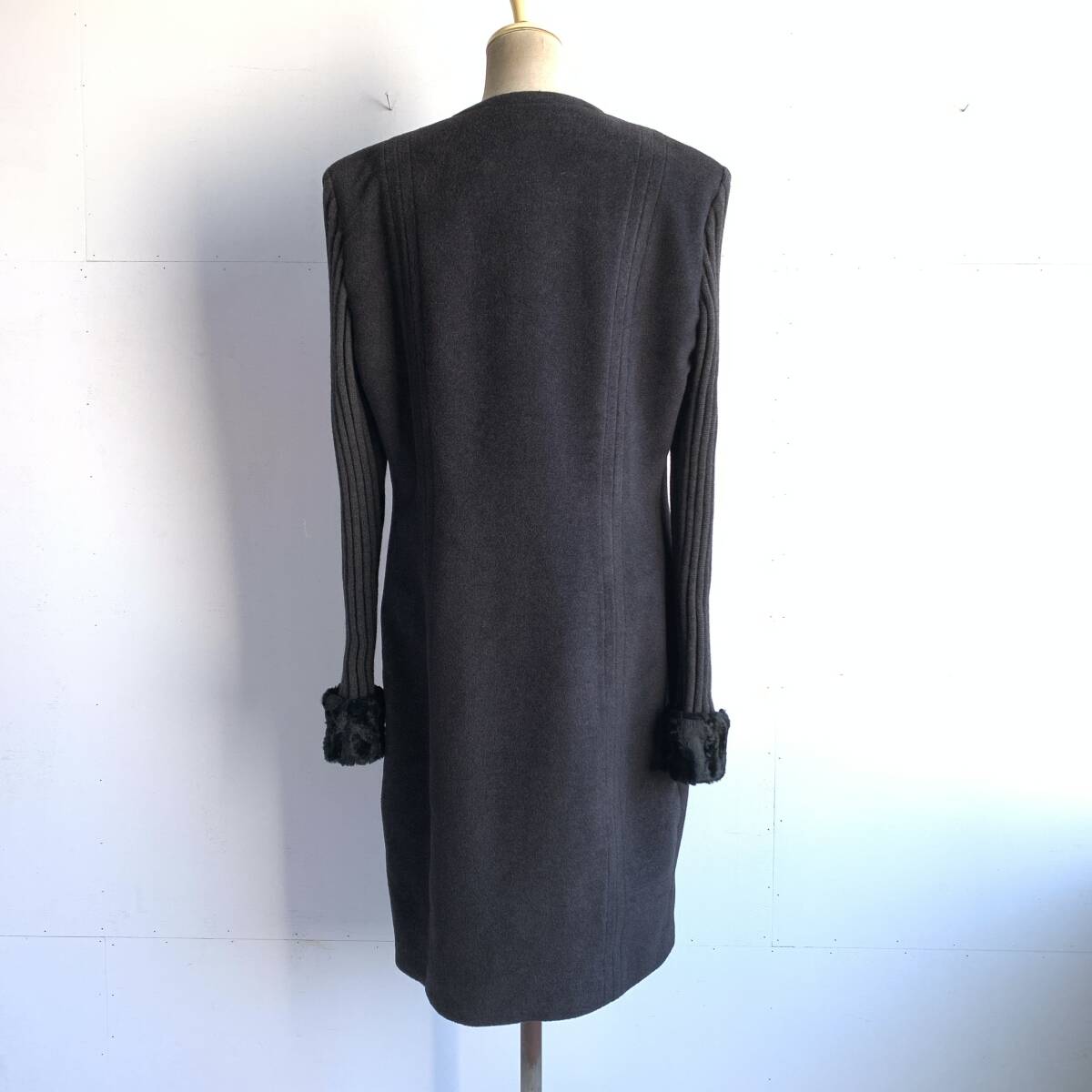 ☆未使用 ROBERTA SCARPA イタリア製 98,000円 毛×絹 リブニット袖切り替えコート ワンピース ダークグレー系 46【送料一律/同梱可能】J