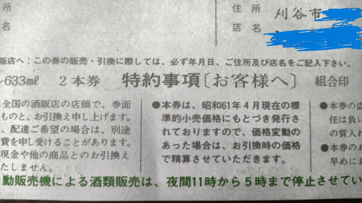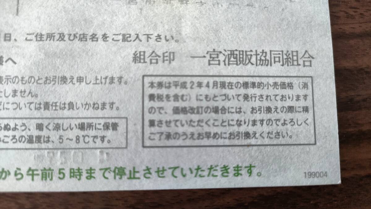 それぞれ平成6年5月現在 平成2年4月 昭和61年4月 の標準小売価格(消費税含む)にもとづいて発行されておりますので、価格改定の場合には、お引換の際には差額を精算させていただきます。と記入されています。