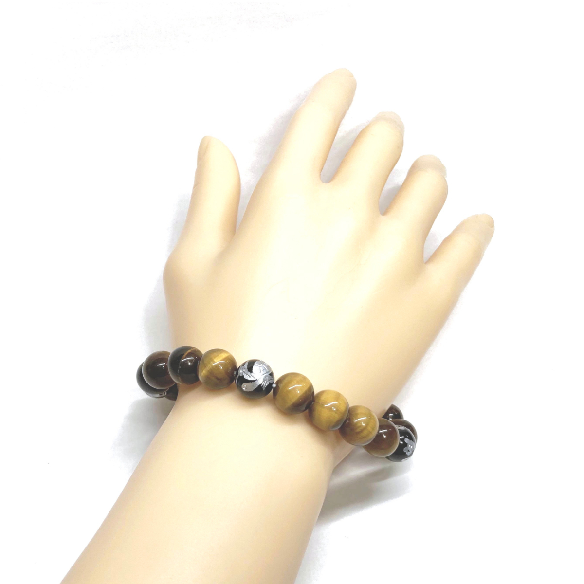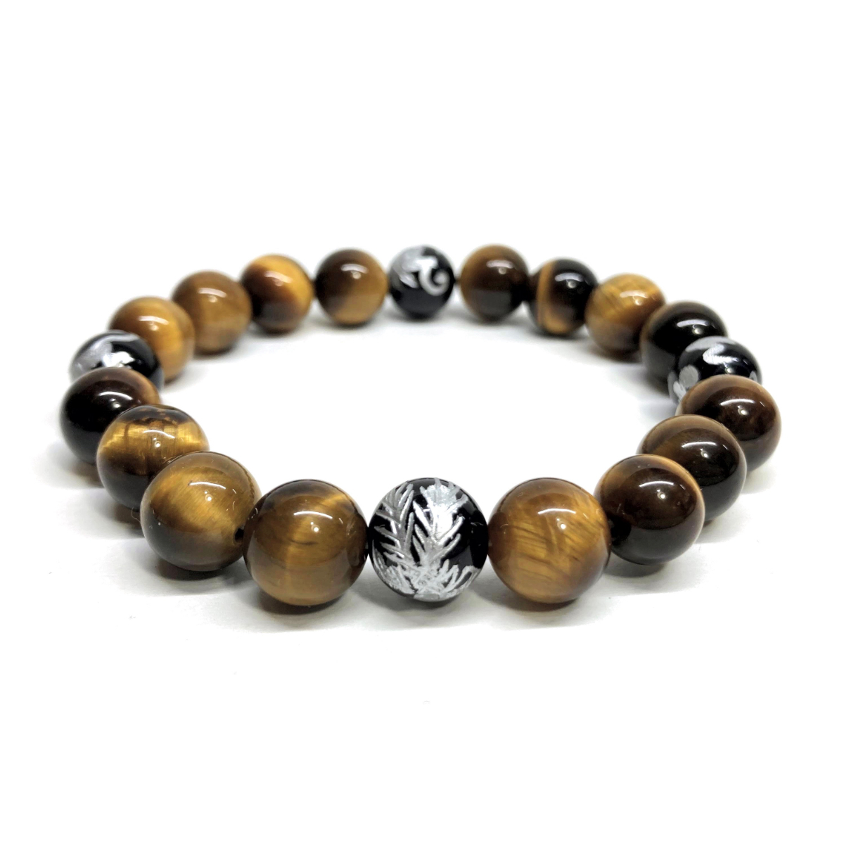 10mm 四神獣銀彫オニキス×タイガーアイ パワーストーン ブレスレット天然石 運気上昇 開運 金運 恋愛運 青龍 白虎 玄武 朱雀 ☆